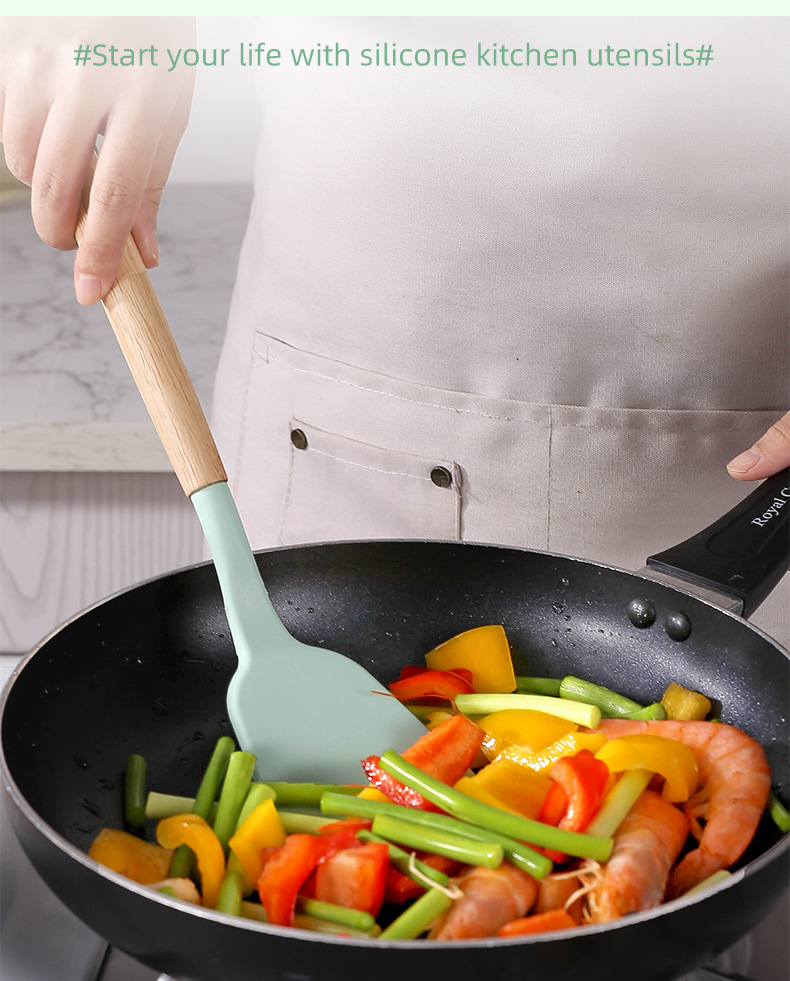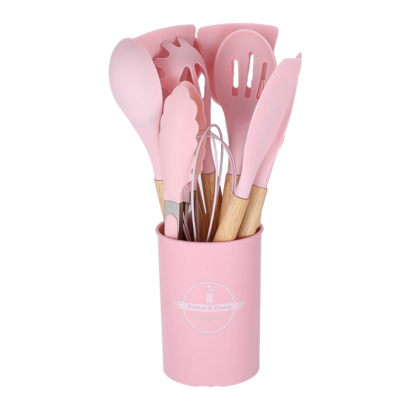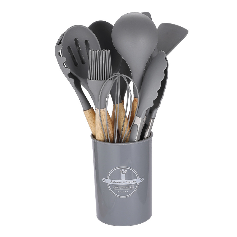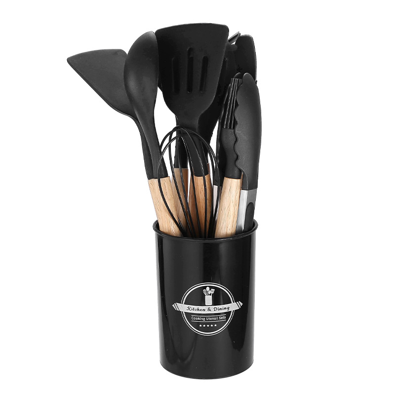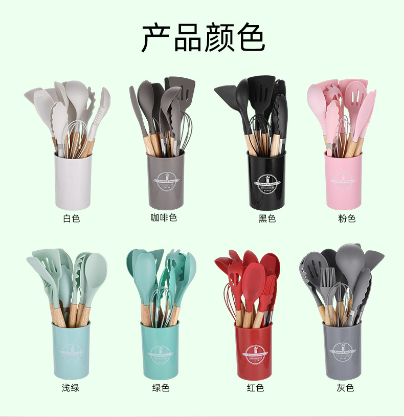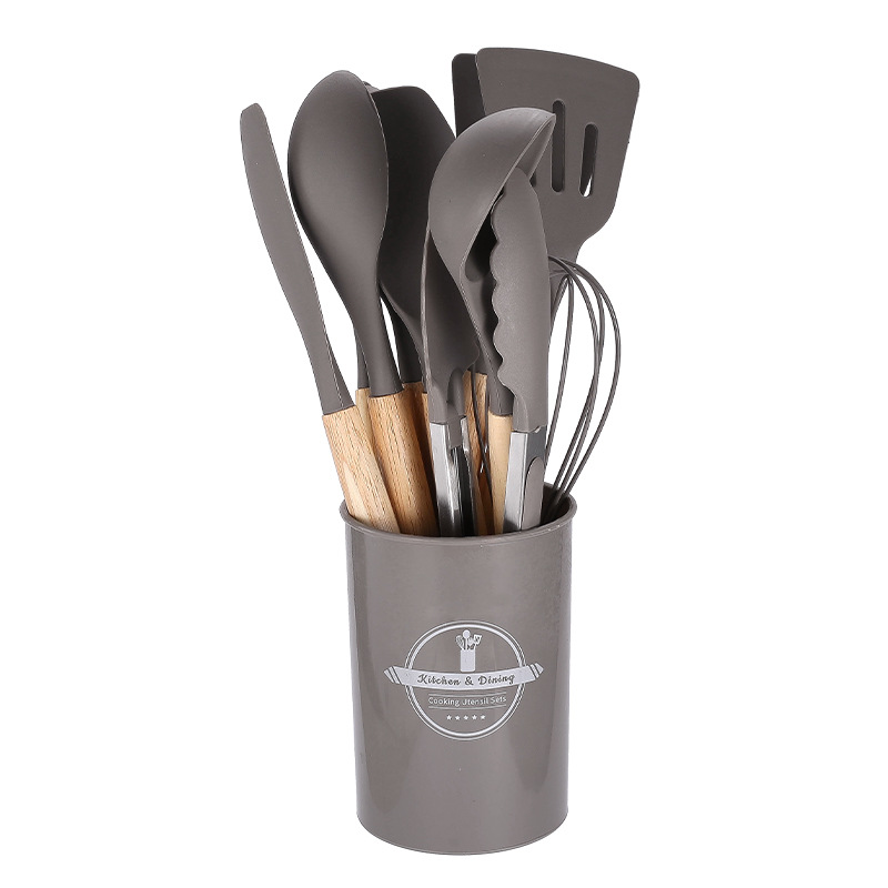 750g 재고 실리콘 주방 용품 12 pce 세트 나무 손잡이 주방 비 스틱 주걱 요리 도구 주방 세트