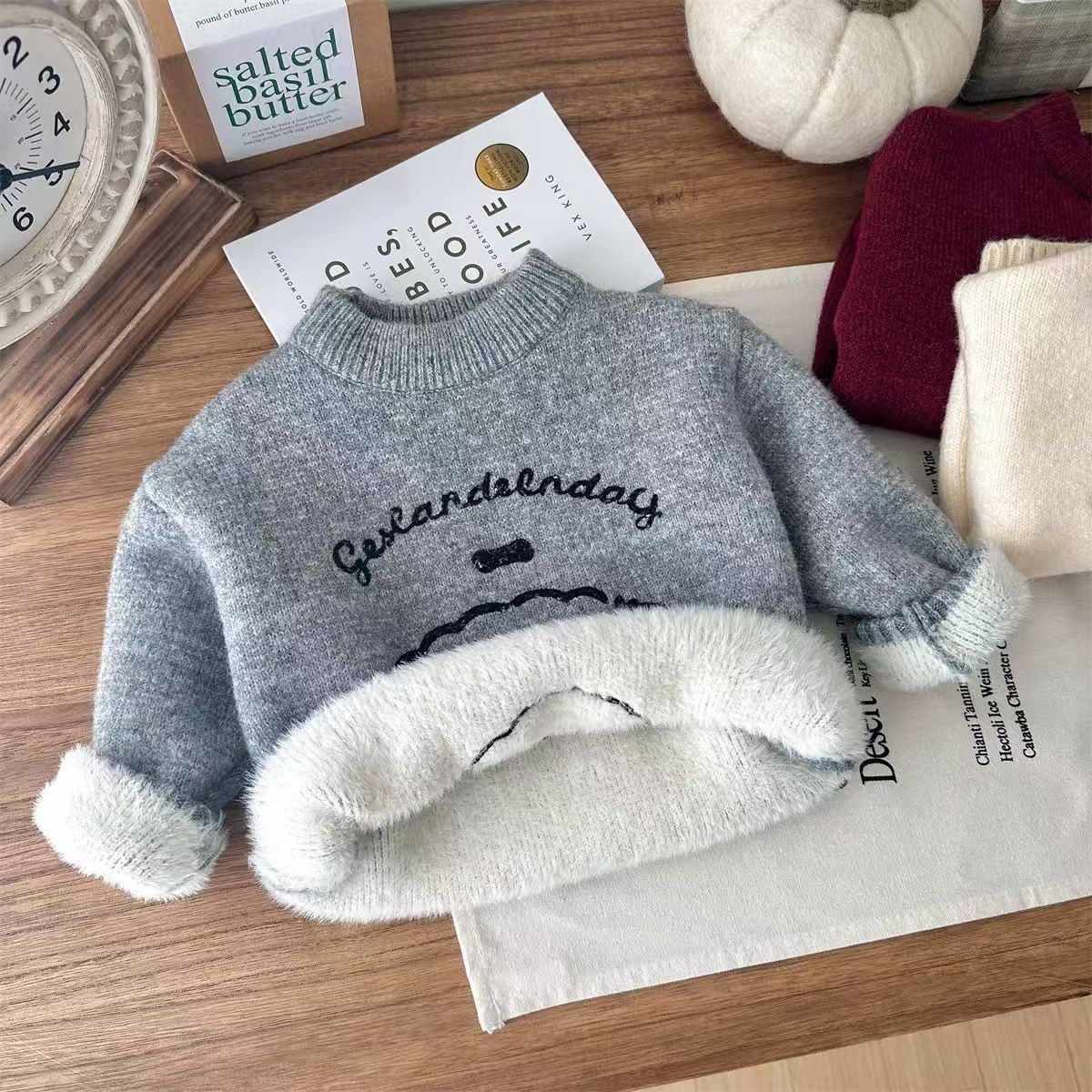 2024 새로운 아기 스웨터 원피스 벨벳 소년 귀여운 스웨터 아기 겨울 옷 어린이 두꺼운 스웨터