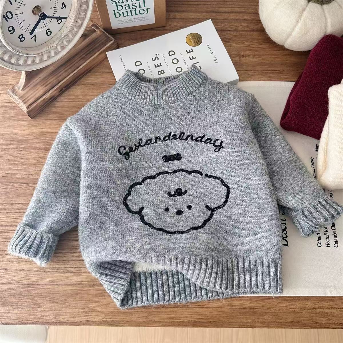 2024 새로운 아기 스웨터 원피스 벨벳 소년 귀여운 스웨터 아기 겨울 옷 어린이 두꺼운 스웨터스토어 가기
