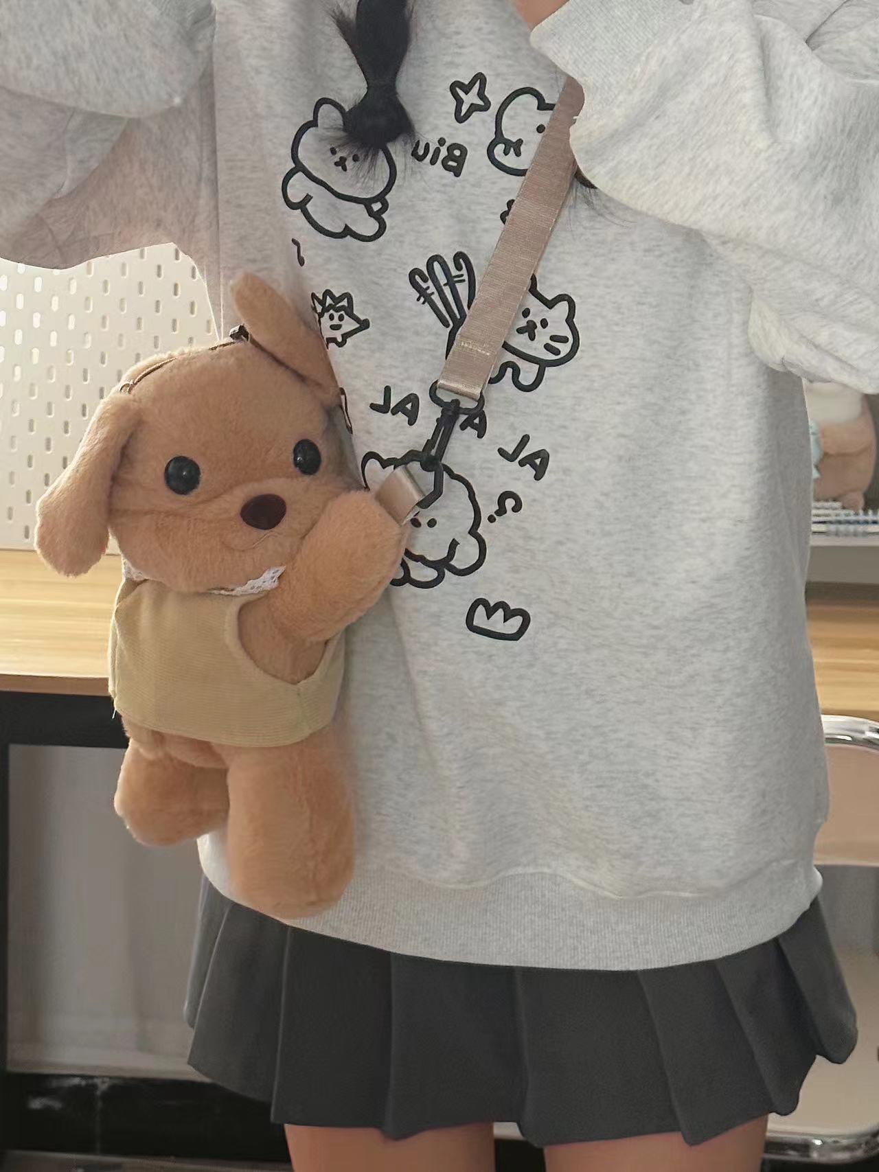 일본어 ins 귀여운 강아지 플러시 장난감 가방 인형 인형 가방 만화 귀여운 원 숄더 크로스 바디 여성용 가방스토어 가기