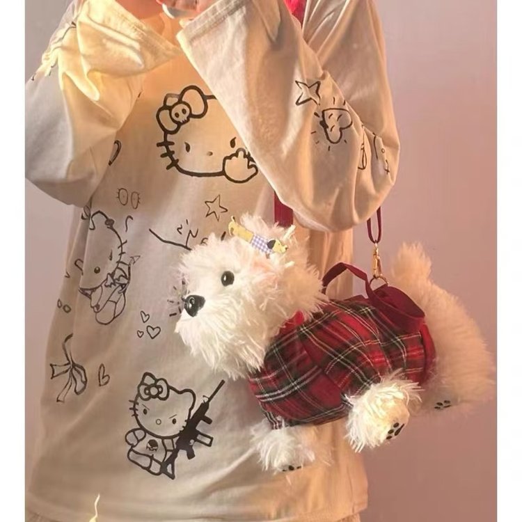 일본어 ins 귀여운 강아지 플러시 장난감 가방 인형 인형 가방 만화 귀여운 원 숄더 크로스 바디 여성용 가방