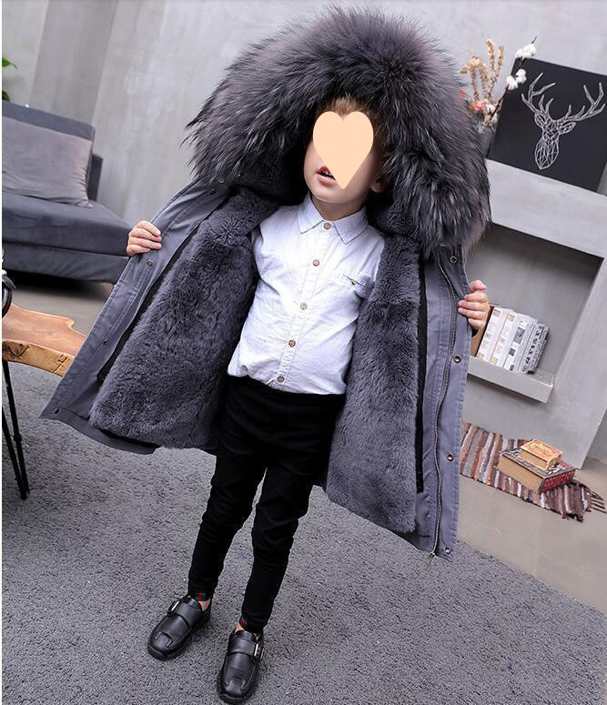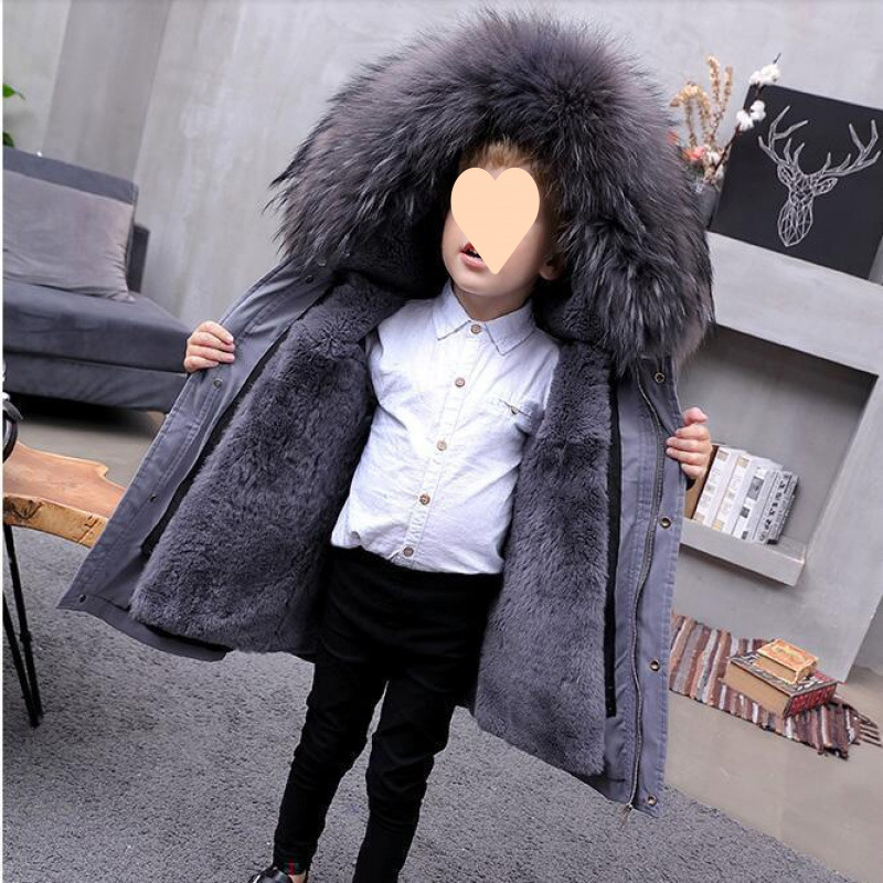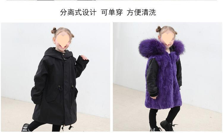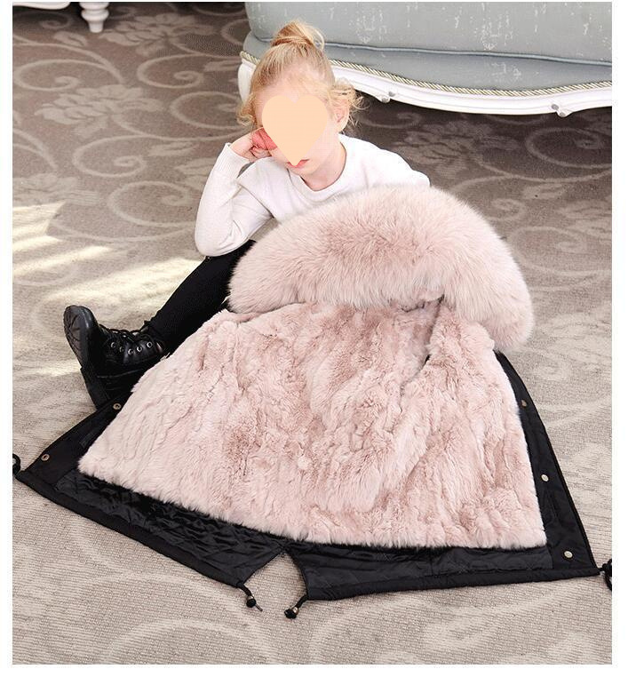 파커 2024 새로운 두꺼운 모조 가죽 자켓 렉스 토끼 모피 소녀 소년 면 옷 어린이 겨울 재킷