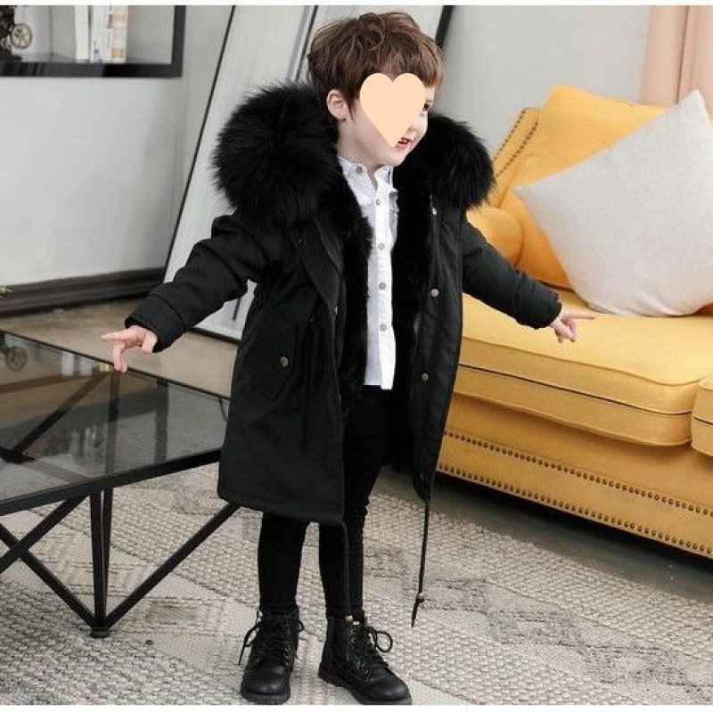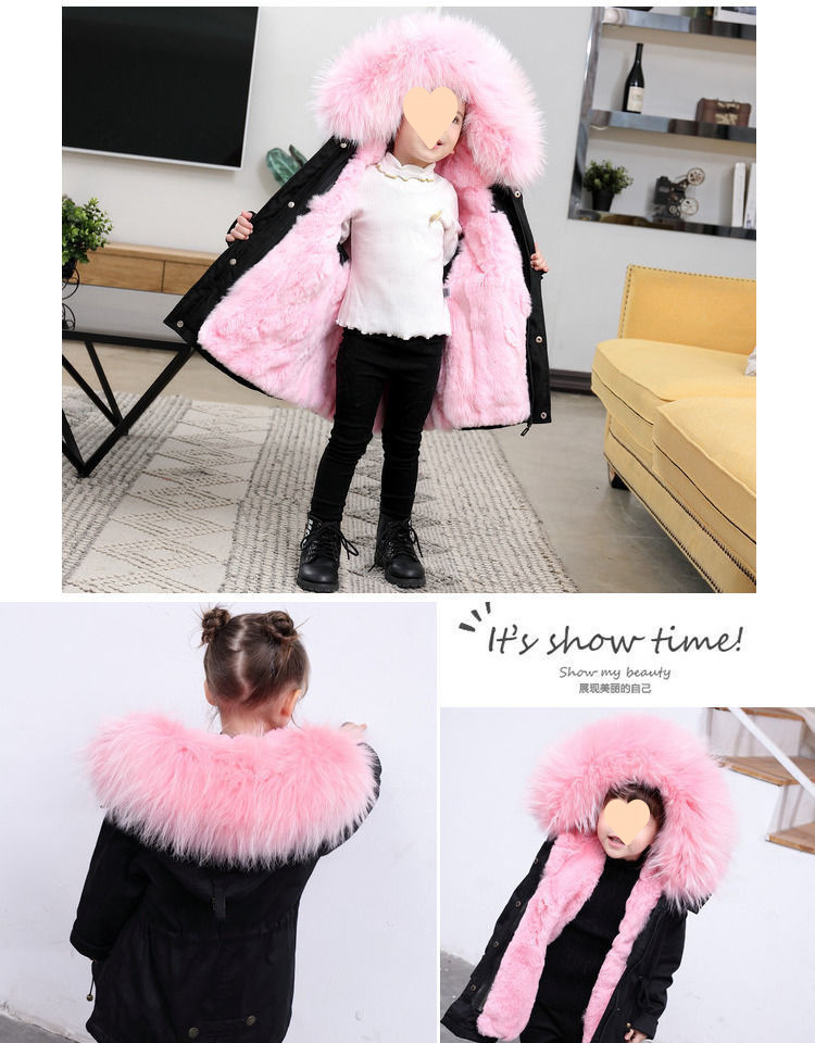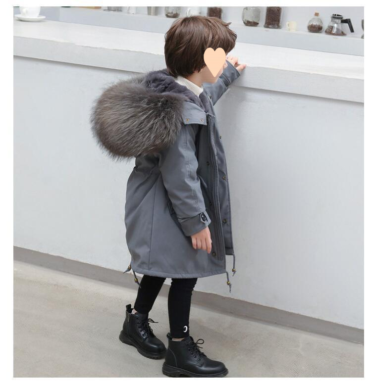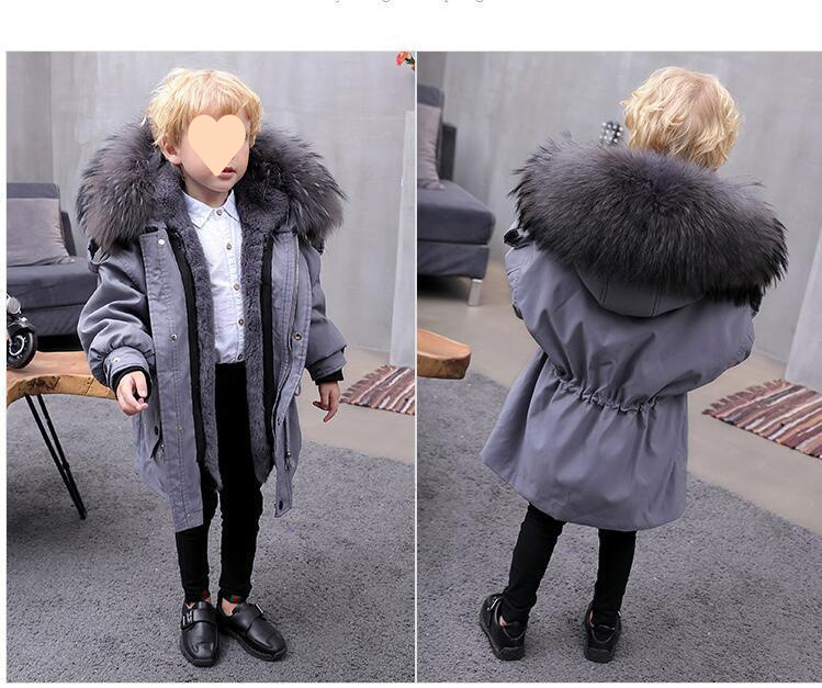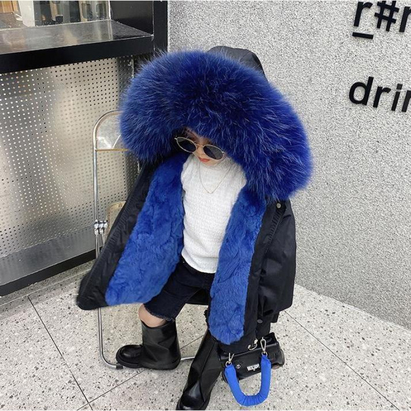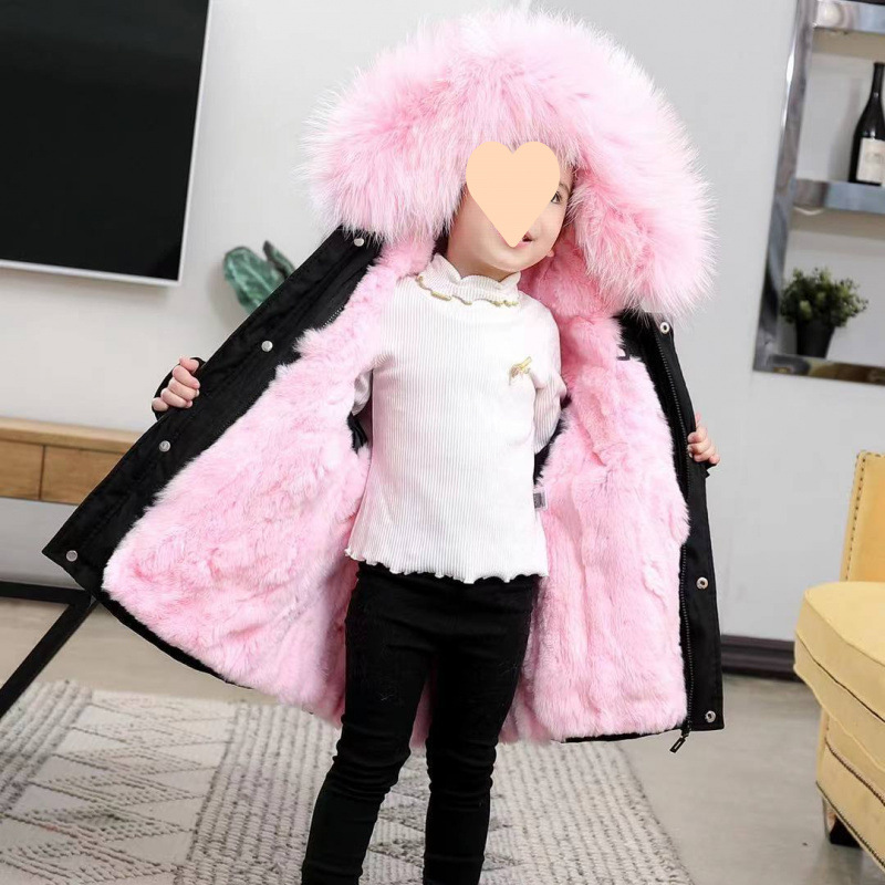 파커 2024 새로운 두꺼운 모조 가죽 자켓 렉스 토끼 모피 소녀 소년 면 옷 어린이 겨울 재킷스토어 가기