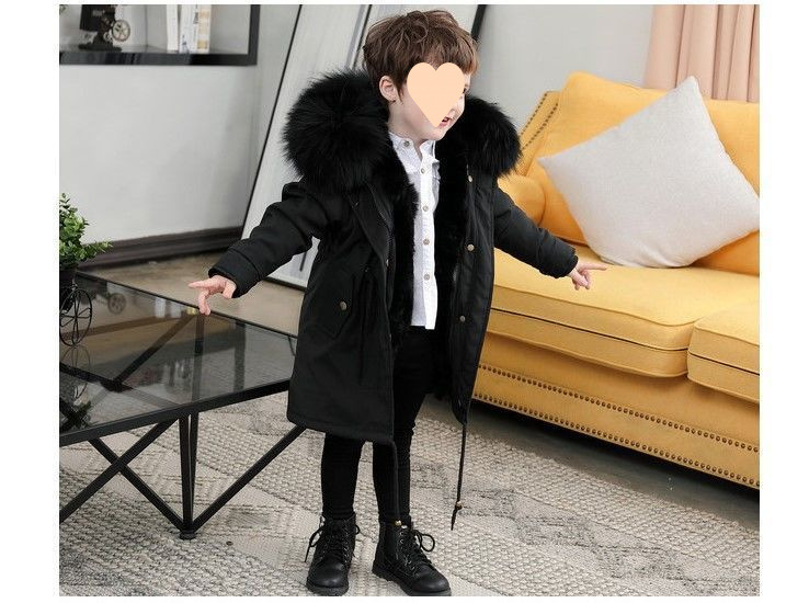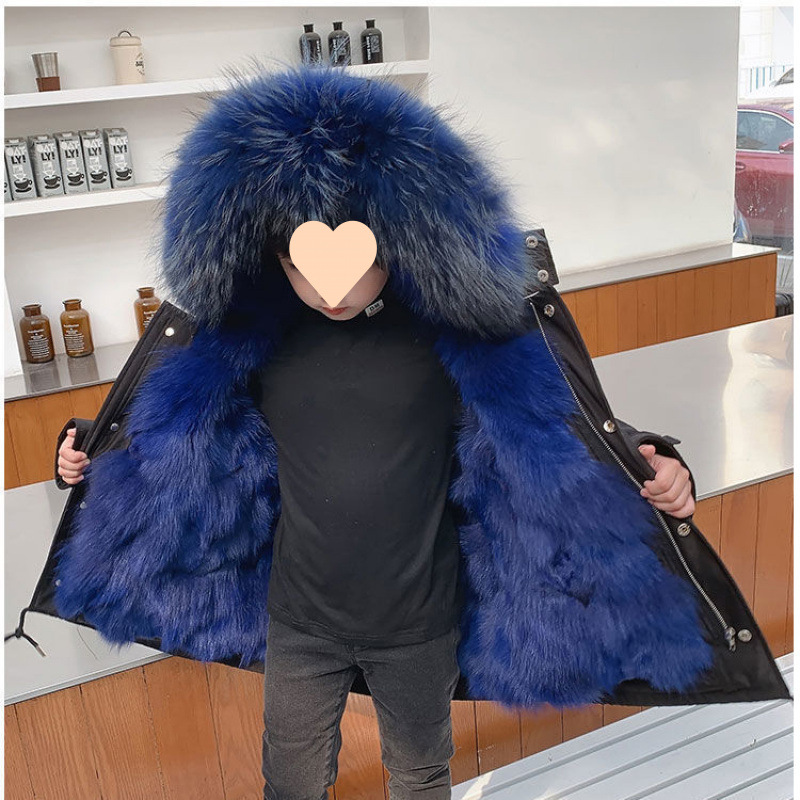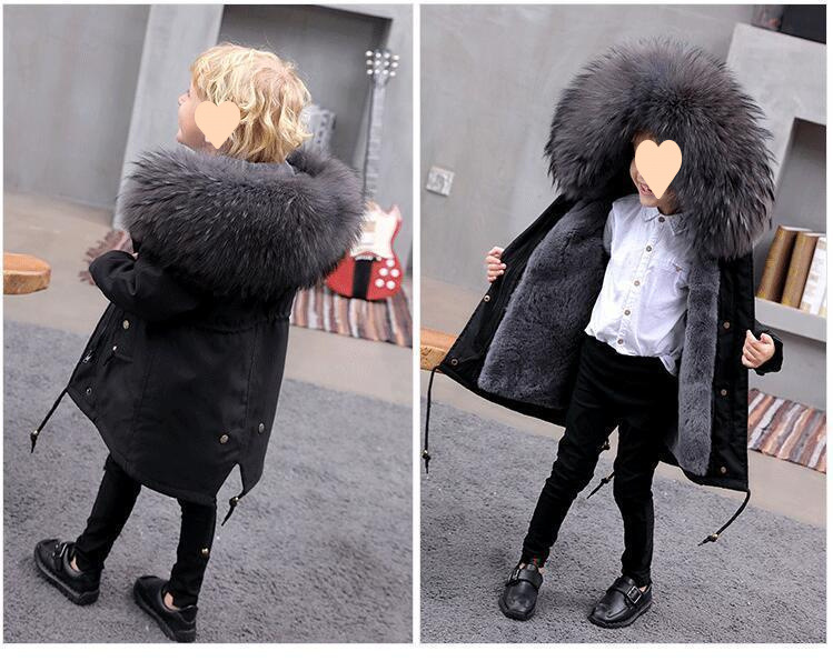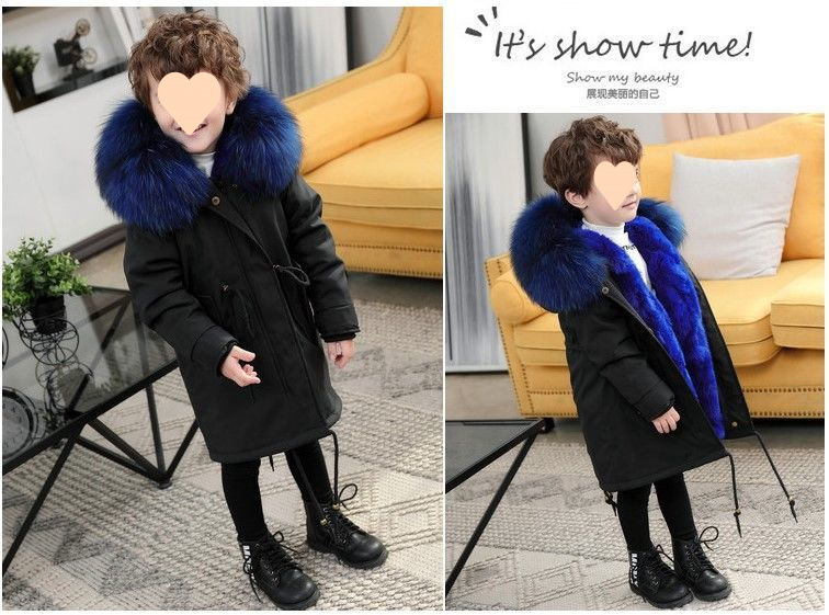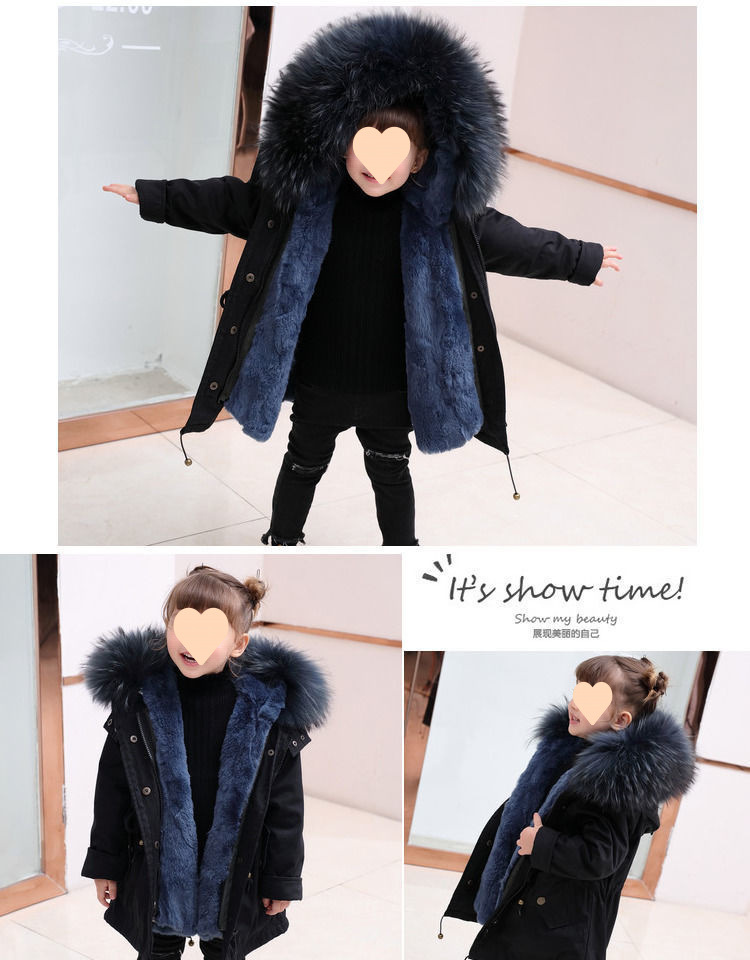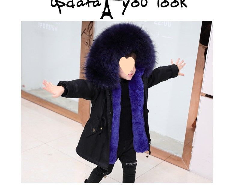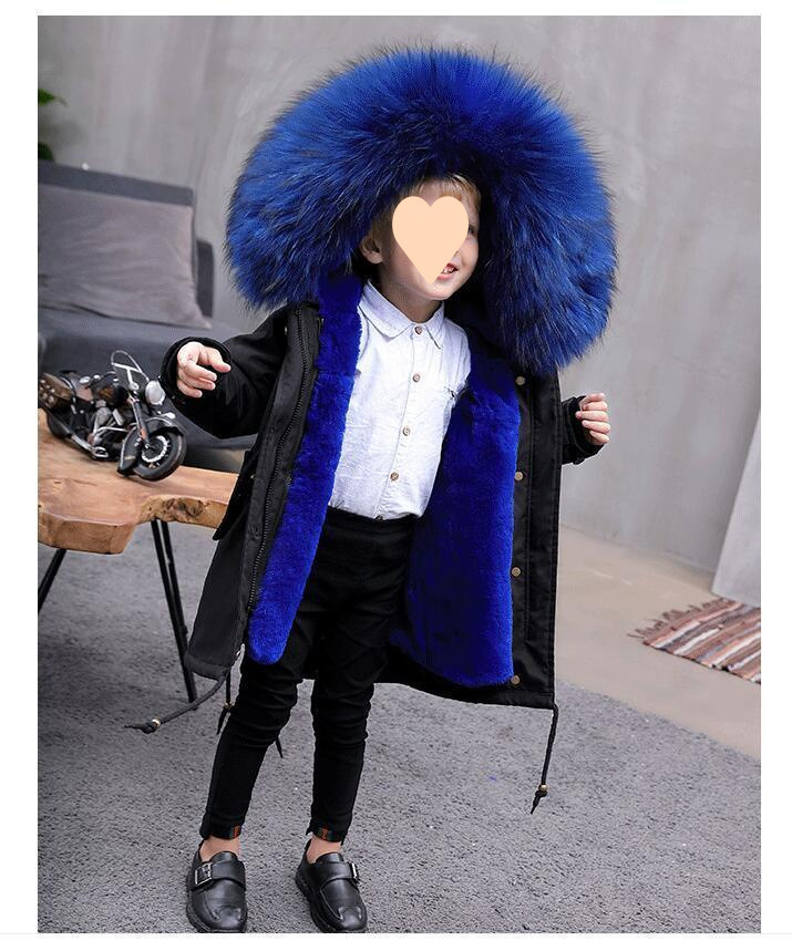 파커 2024 새로운 두꺼운 모조 가죽 자켓 렉스 토끼 모피 소녀 소년 면 옷 어린이 겨울 재킷스토어 가기