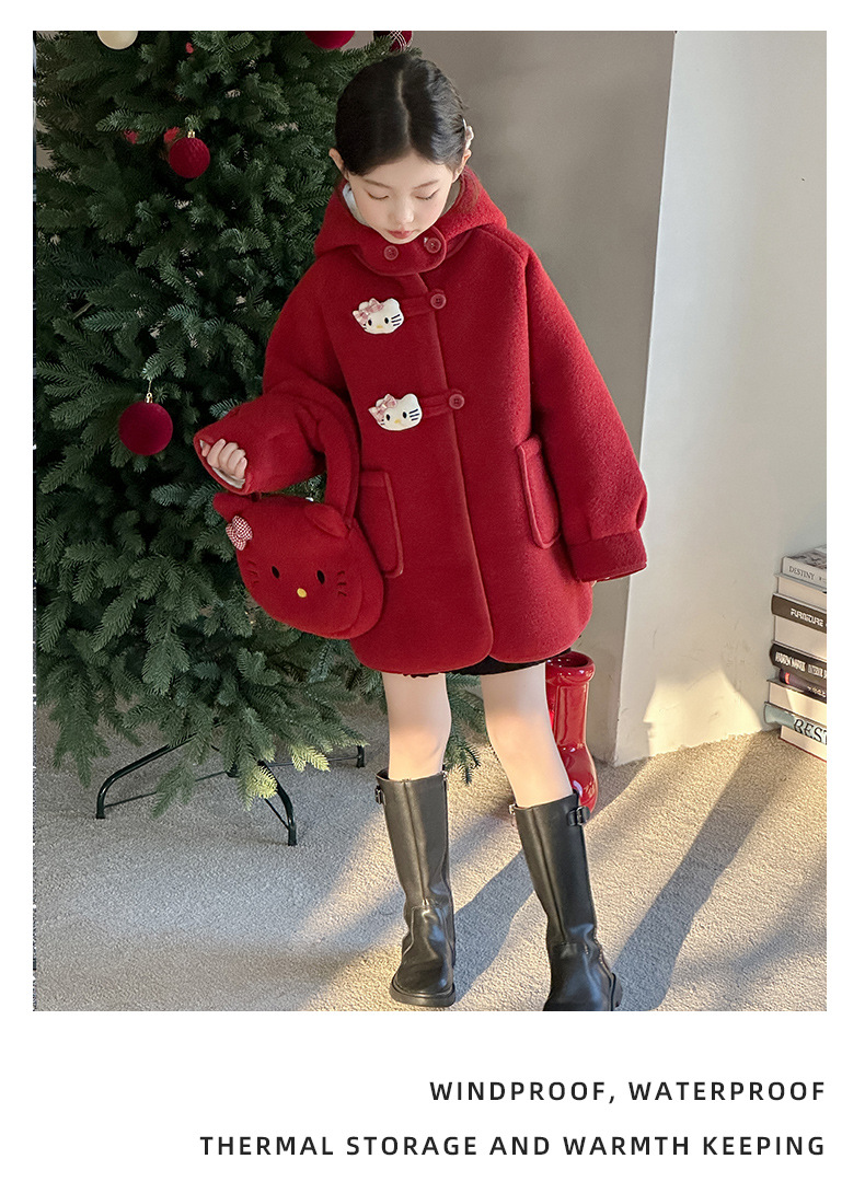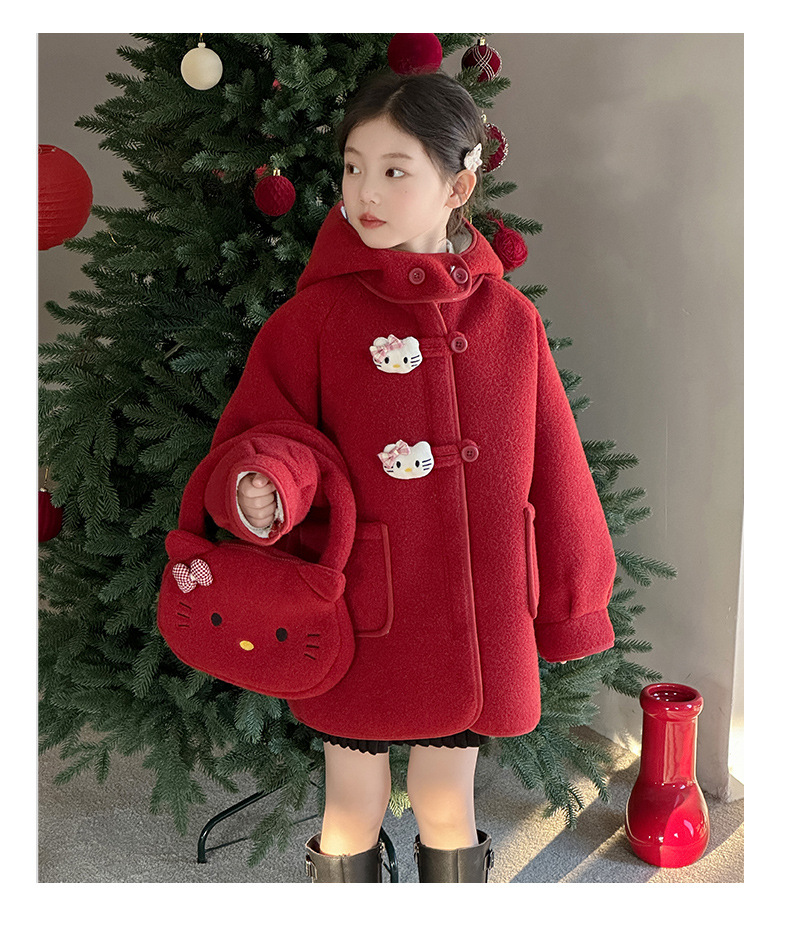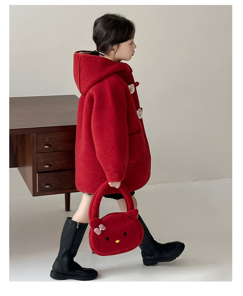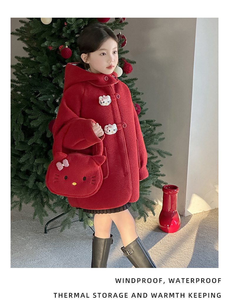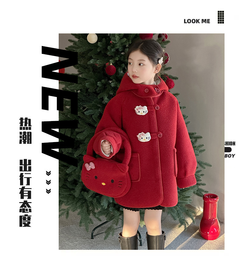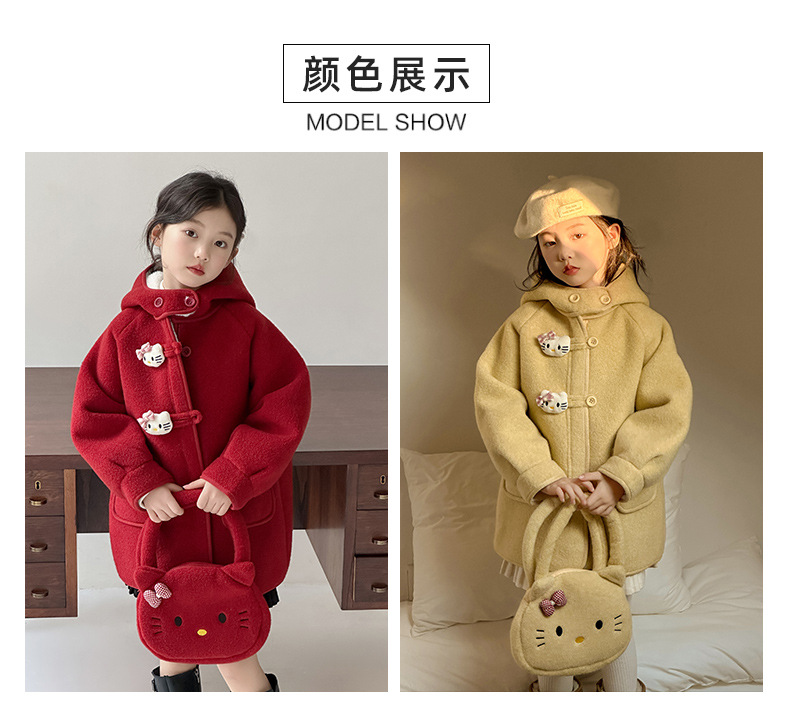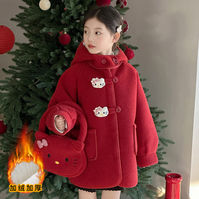 2025【가방 증정】아동용 겨울 코트 신상 패션 플러스 벨벳 두꺼운 중간 길이 신년 코트 여아용