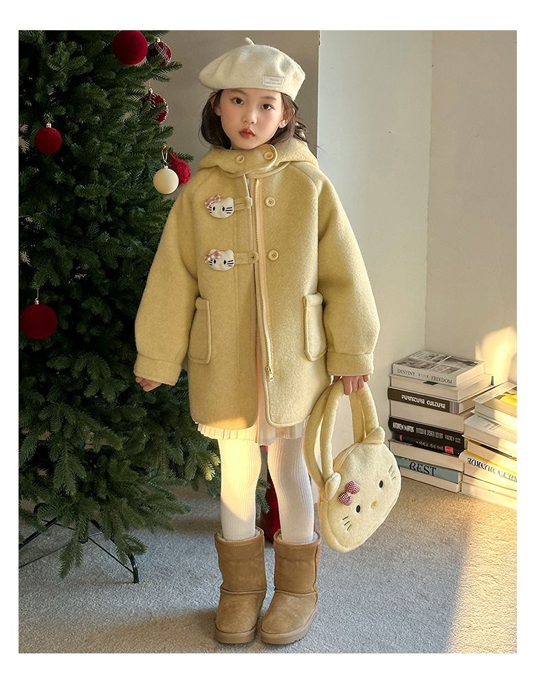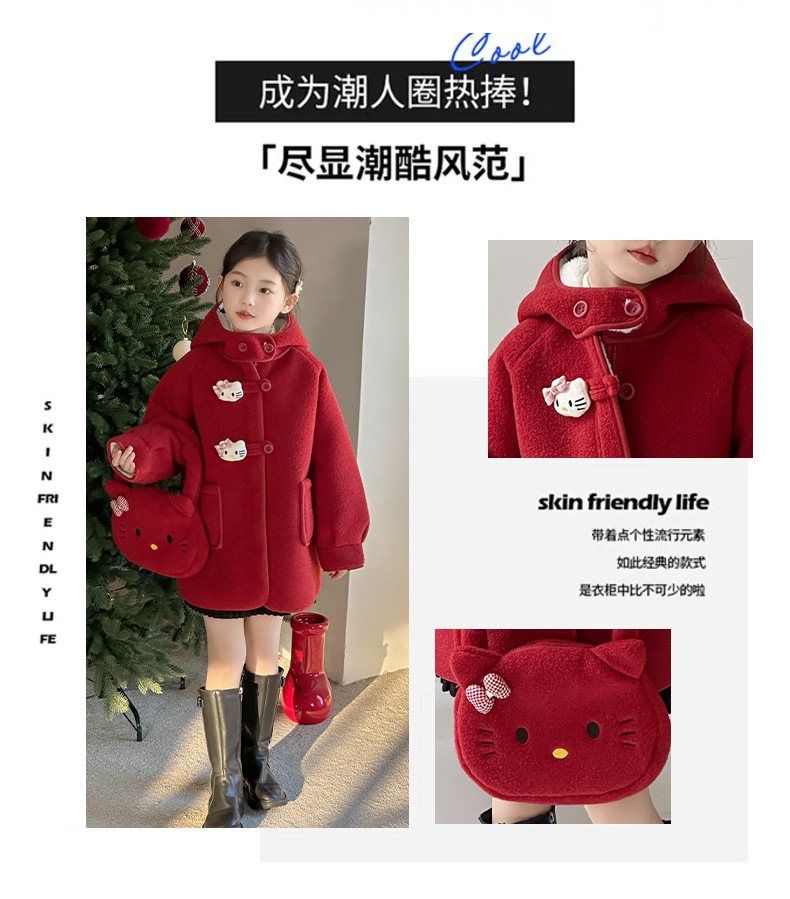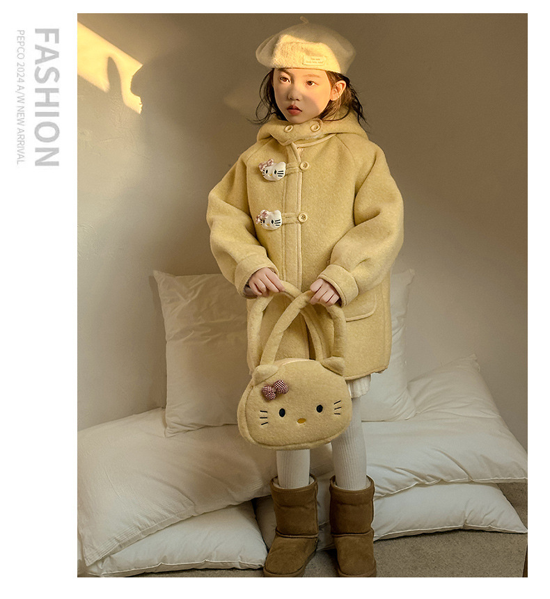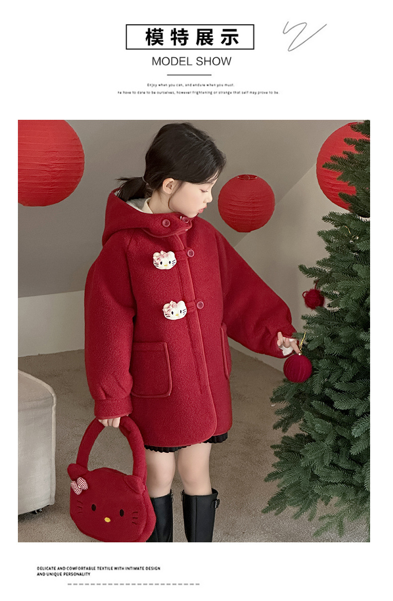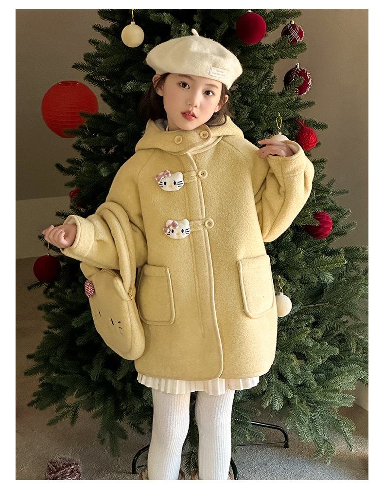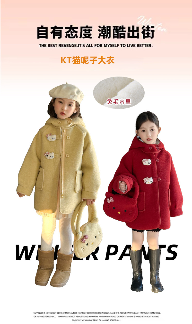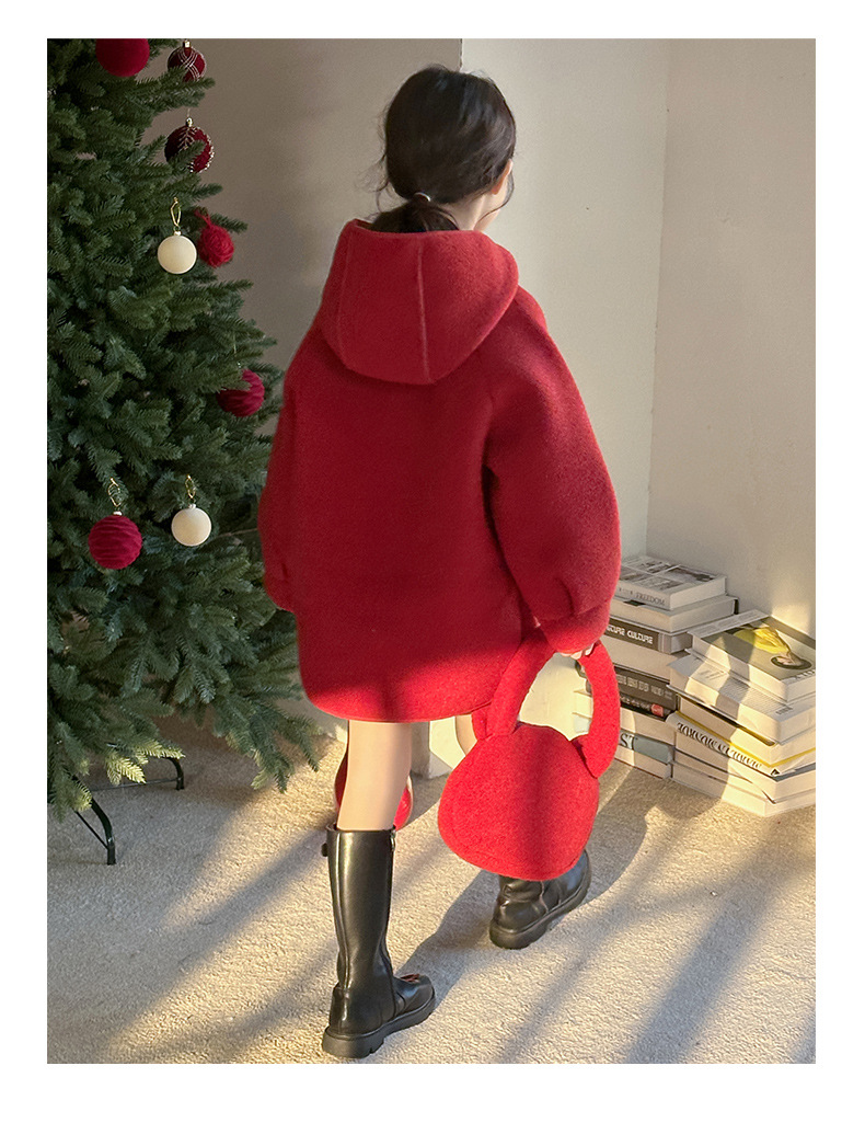 2025【가방 증정】아동용 겨울 코트 신상 패션 플러스 벨벳 두꺼운 중간 길이 신년 코트 여아용