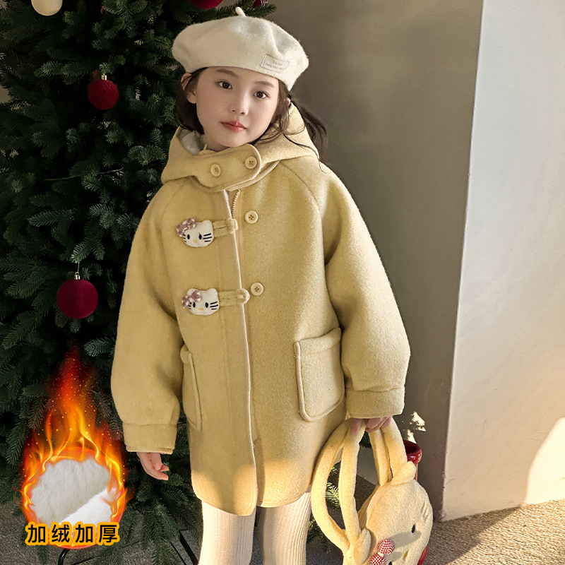 2025【가방 증정】아동용 겨울 코트 신상 패션 플러스 벨벳 두꺼운 중간 길이 신년 코트 여아용스토어 가기