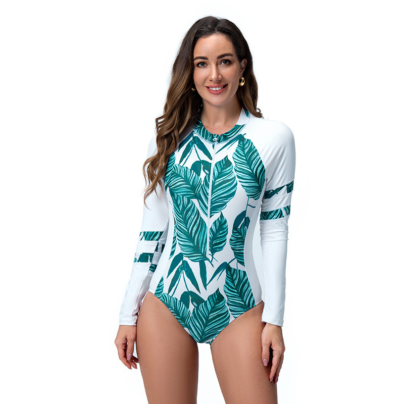 2024 유럽과 미국의 대외 무역 원피스 스포츠 수영복 여성 긴팔 지퍼 선 스크린 서핑 세트 해파리 세트 수영복 다이빙 세트스토어 가기