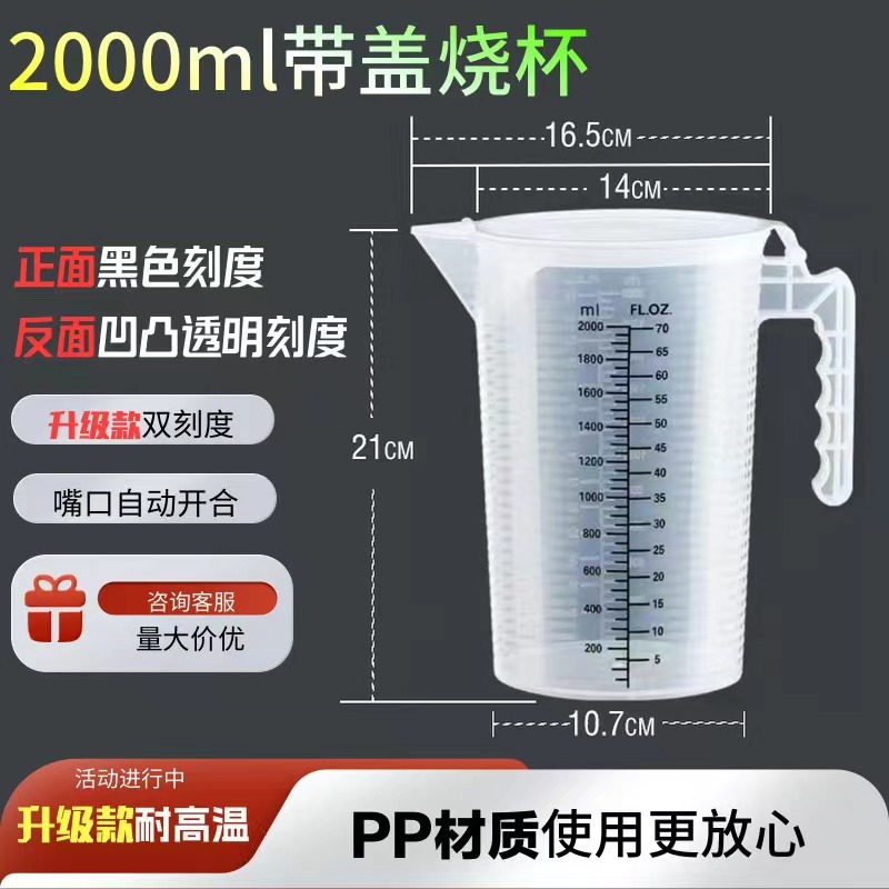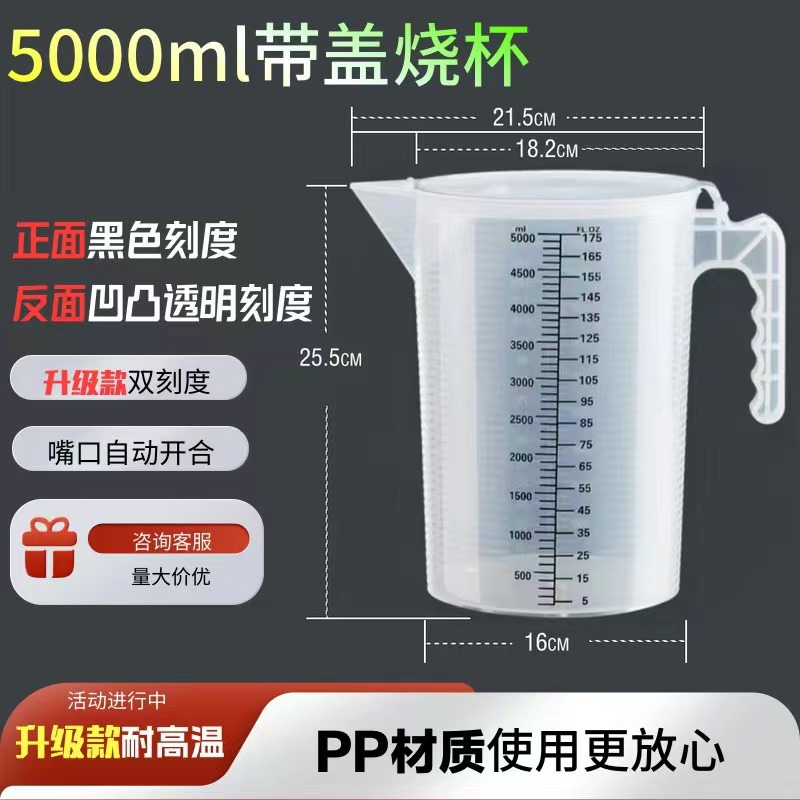 뚜껑이 있는 플라스틱 계량컵, pp 비커, 대용량 5리터, 눈금 표시, 2L, 5L, 고온 내성, 밀크티 가게, 가정용 베이킹