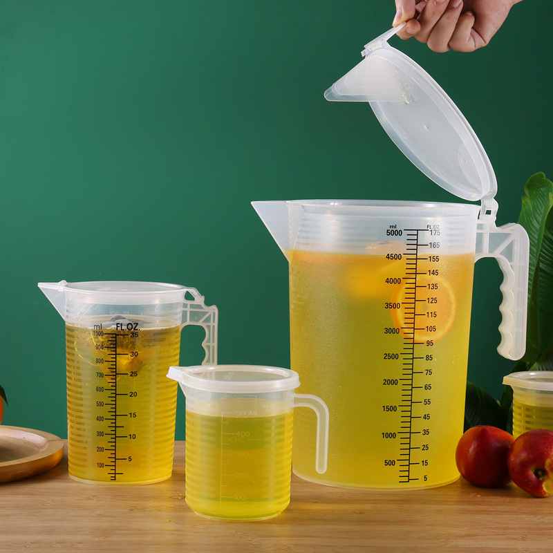 뚜껑이 있는 플라스틱 계량컵, pp 비커, 대용량 5리터, 눈금 표시, 2L, 5L, 고온 내성, 밀크티 가게, 가정용 베이킹스토어 가기