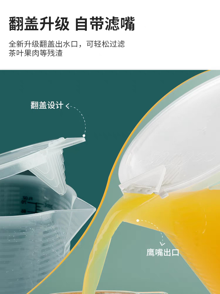 • 2000ml 더블 플립 커버 블랙 눈금 선 측정 컵