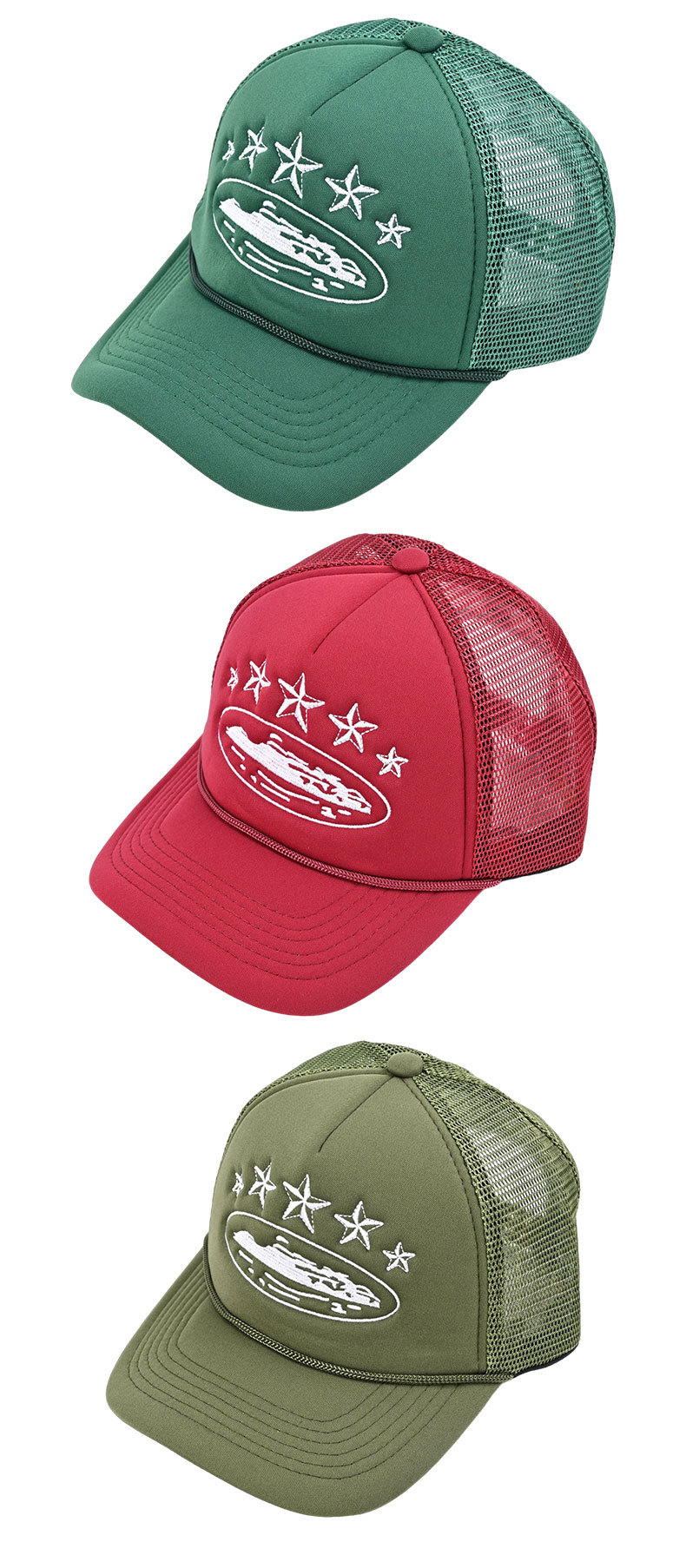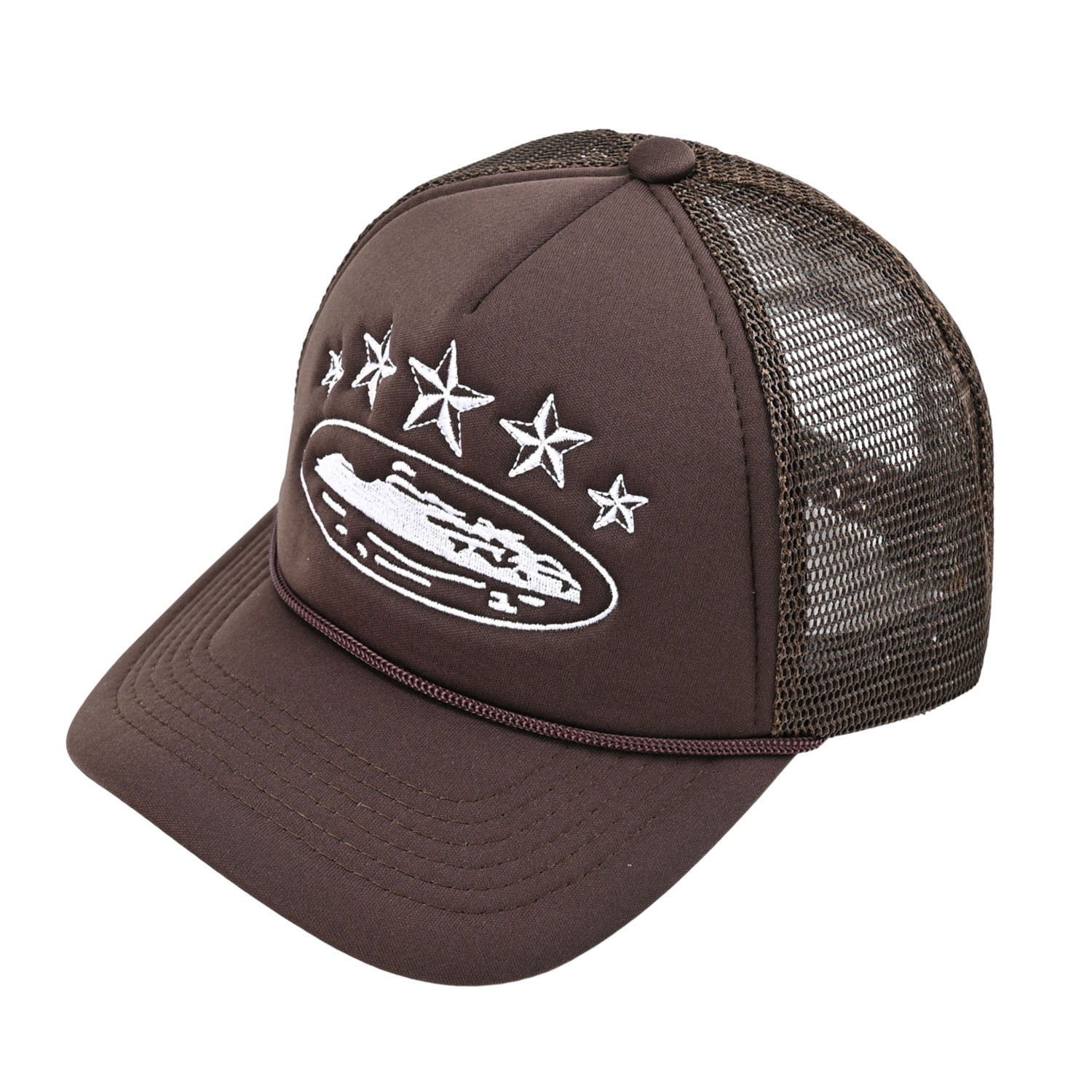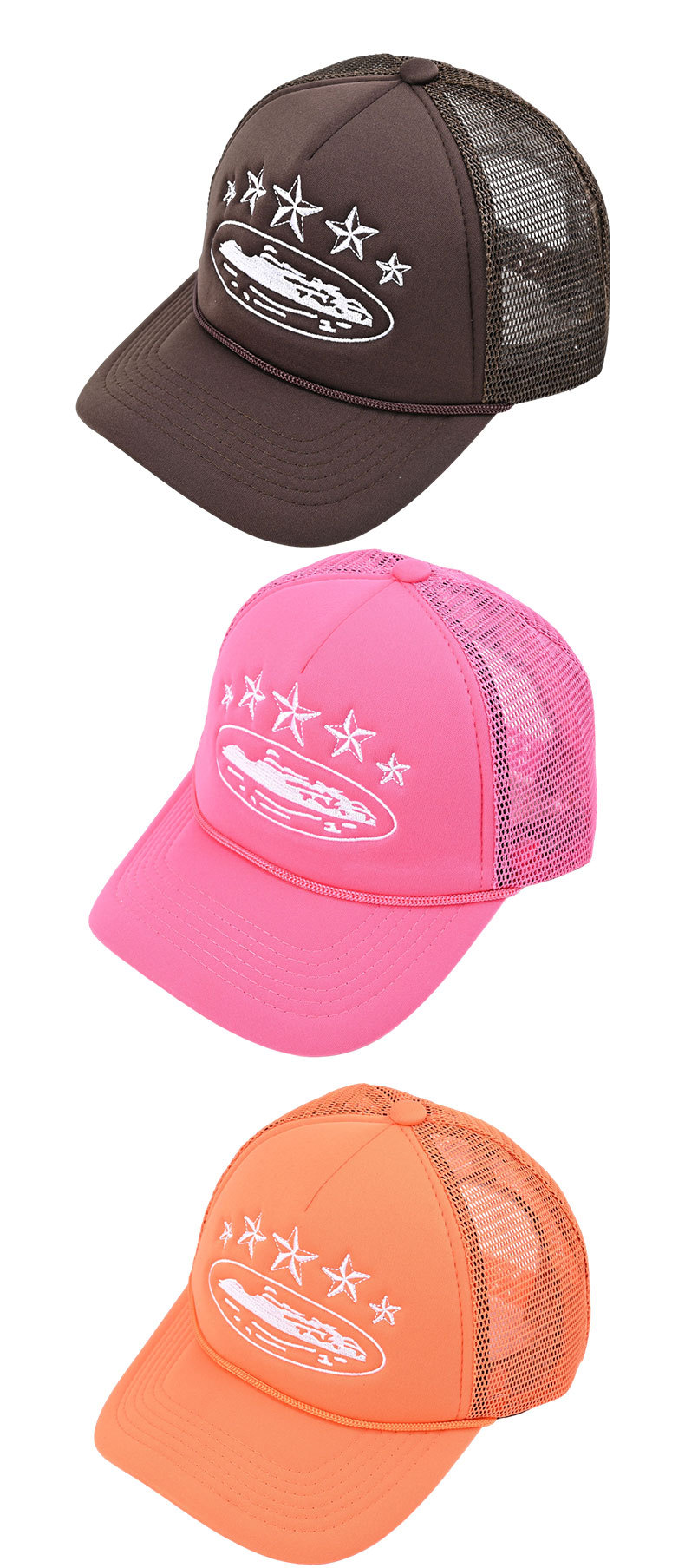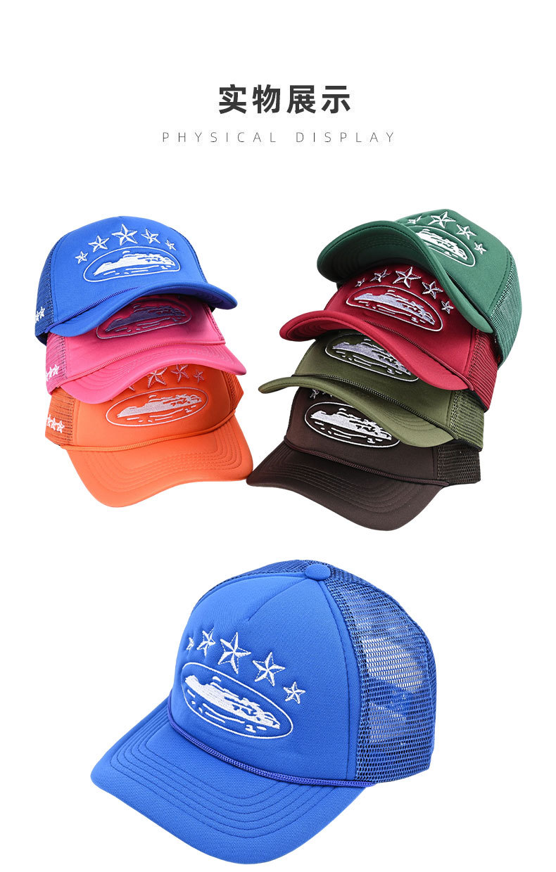 새로운 유럽과 미국의 패션 브랜드 야구 모자 개인화 된 유람선 자수 트럭 캡 다섯개의 별화물 트럭 캡 패션 스타 그물 모자스토어 가기
