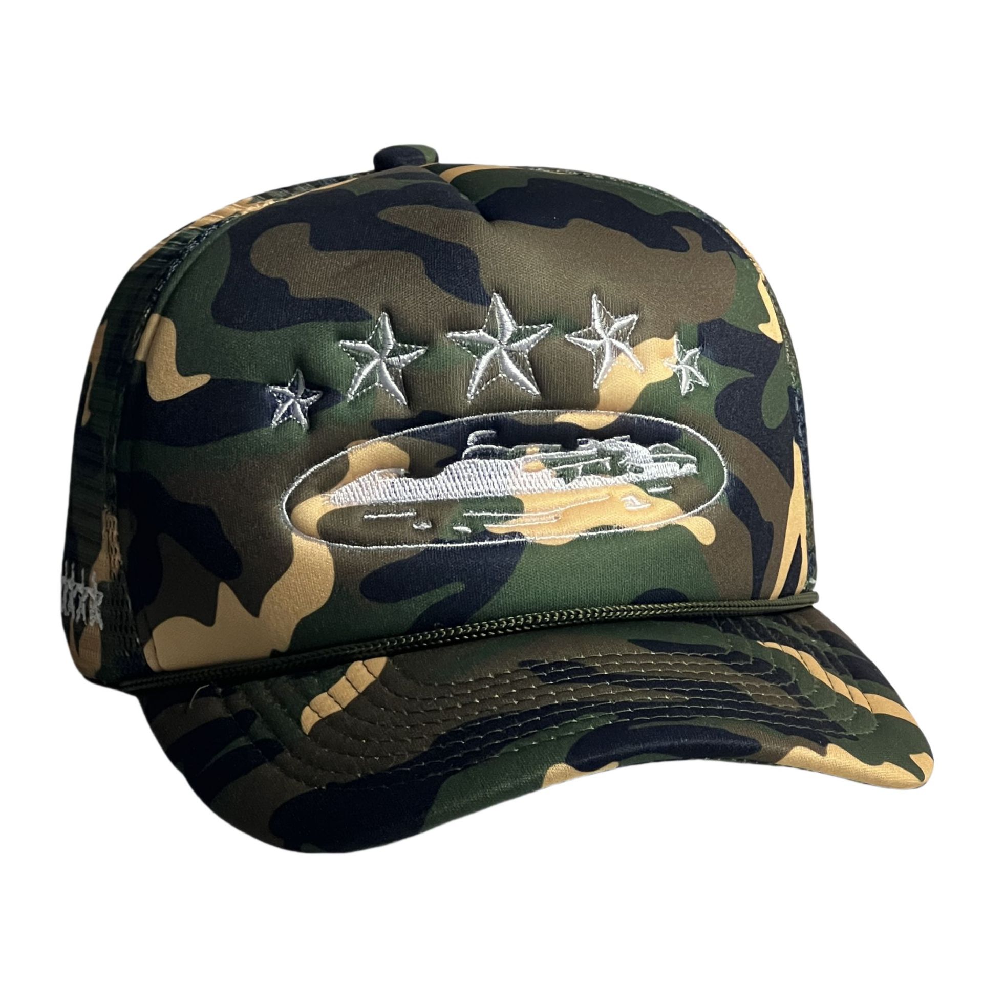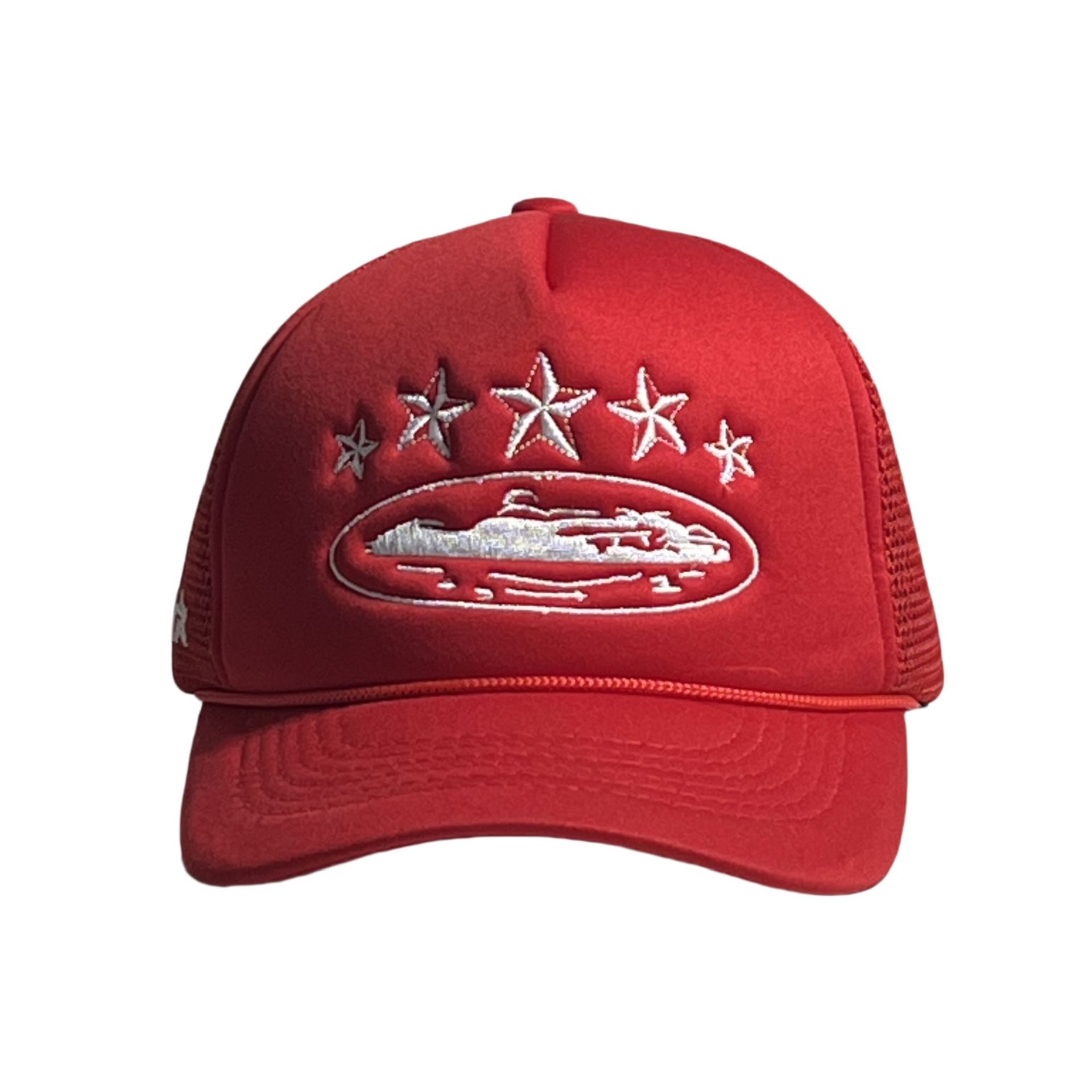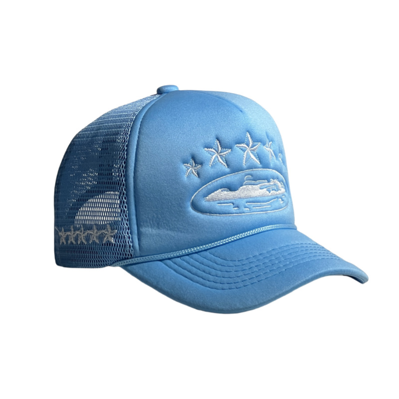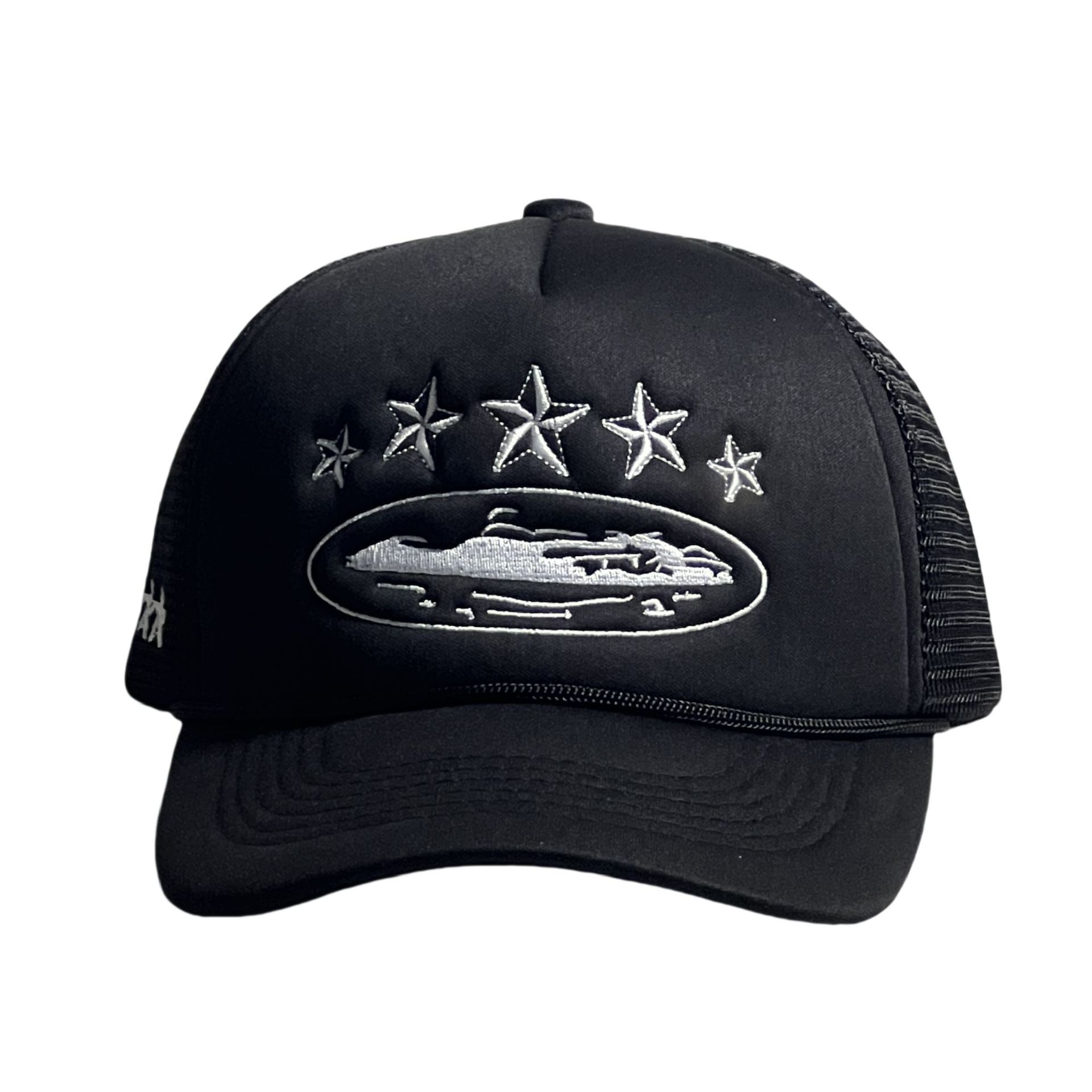 새로운 유럽과 미국의 패션 브랜드 야구 모자 개인화 된 유람선 자수 트럭 캡 다섯개의 별화물 트럭 캡 패션 스타 그물 모자스토어 가기
