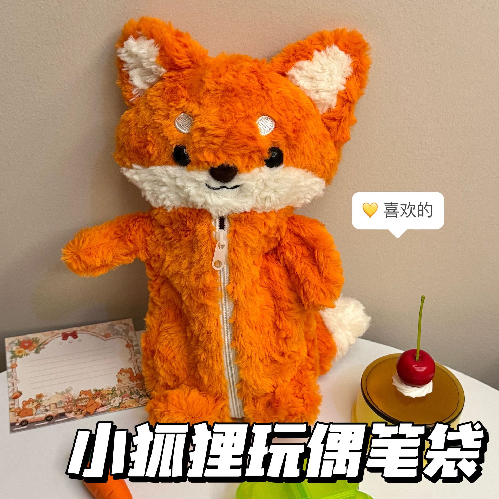 새로운 Ins 창조적 인 귀여운 만화 폭스 봉제 연필 가방 인형 학생 데스크탑 저장 연필 가방 생일 선물스토어 가기