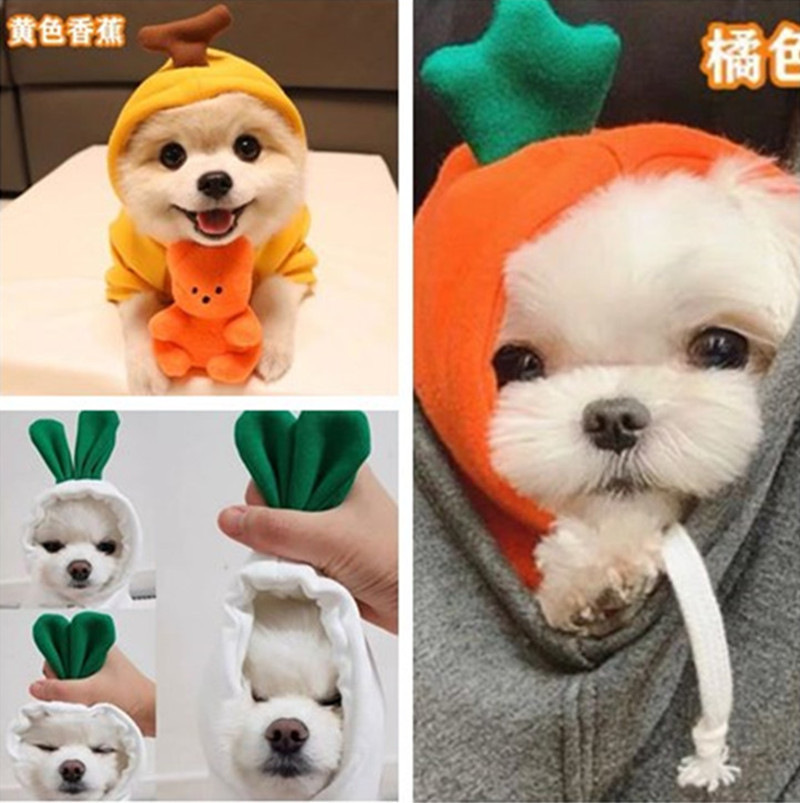 과일 변형 의류 고양이 개 옷 테디 비터 베어 포메 작은 개 가을과 겨울 따뜻한 기모 스웨터스토어 가기