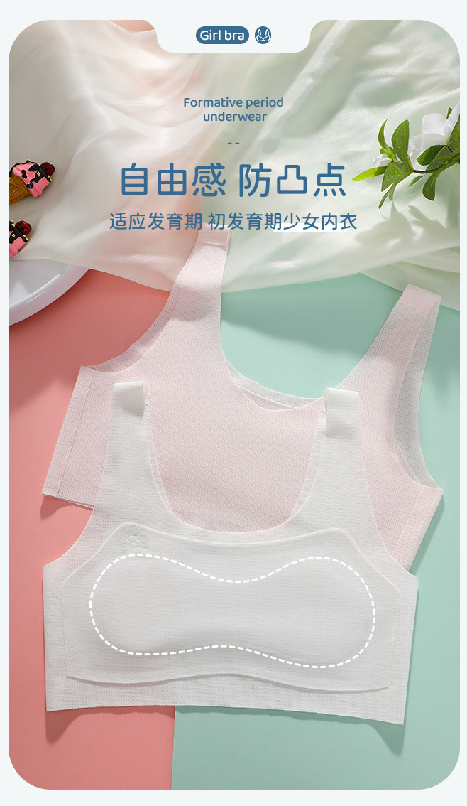 소녀 개발 와이드 어깨 조끼 소녀 속옷 여름 접착제 얇은 원활한 원피스 브래지어 도매
