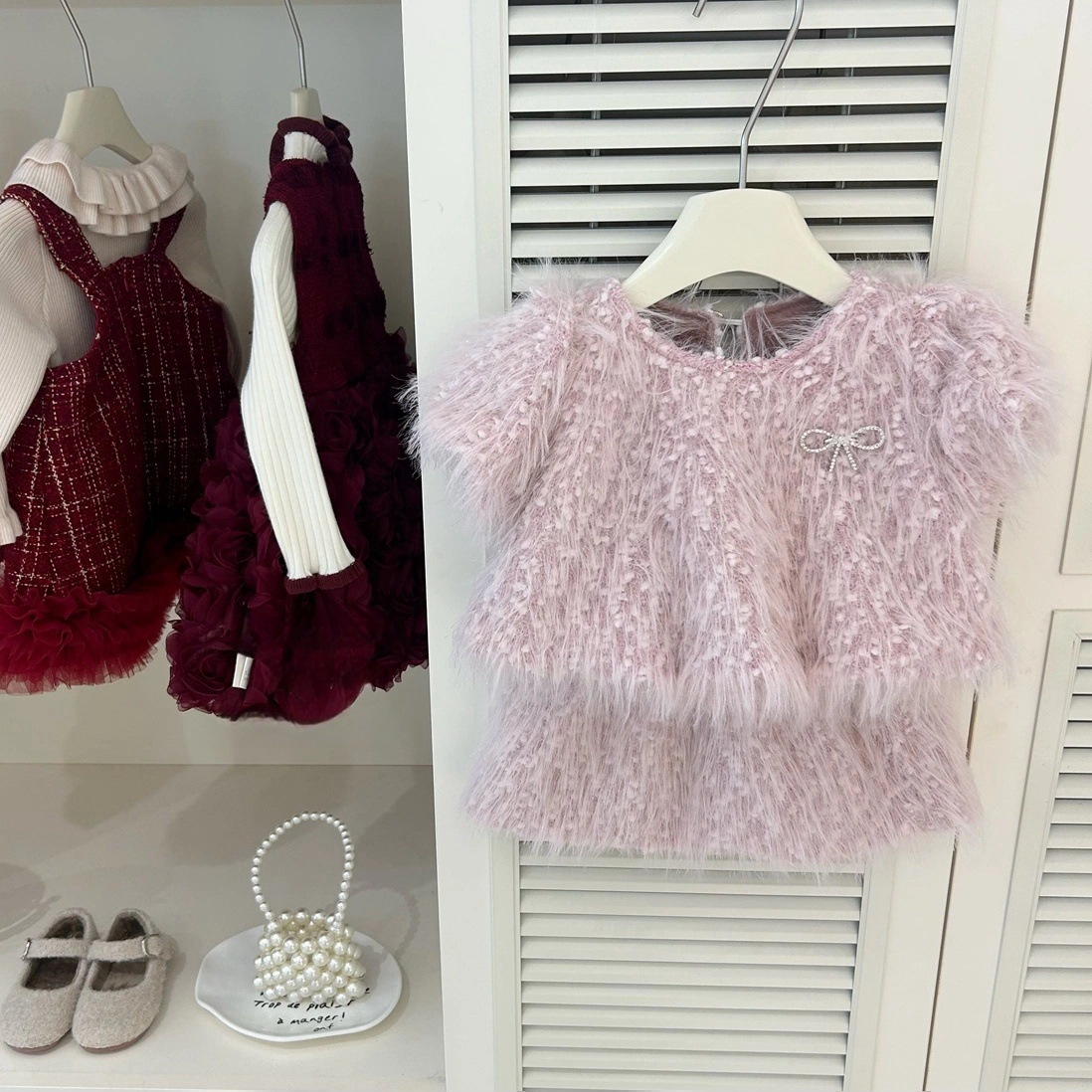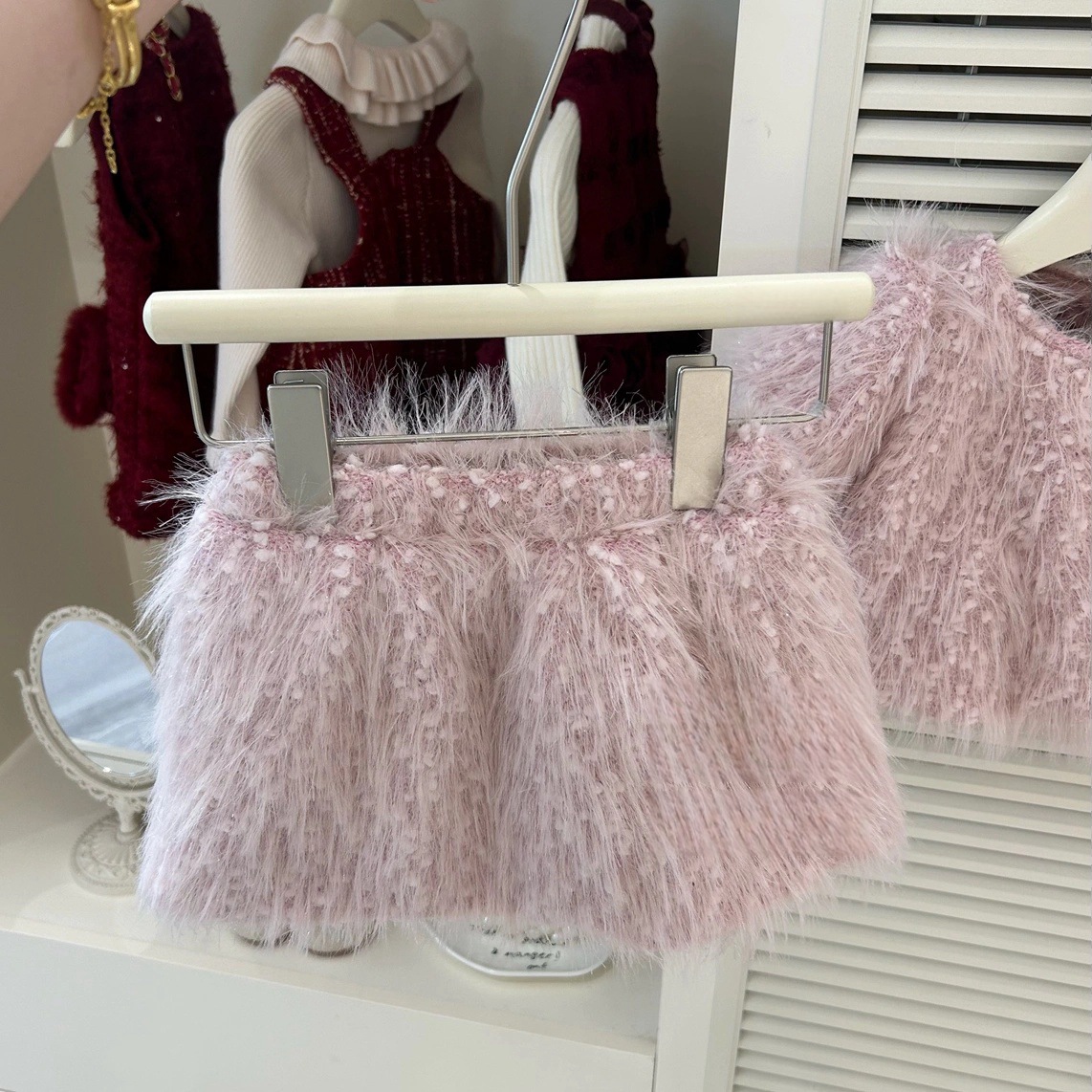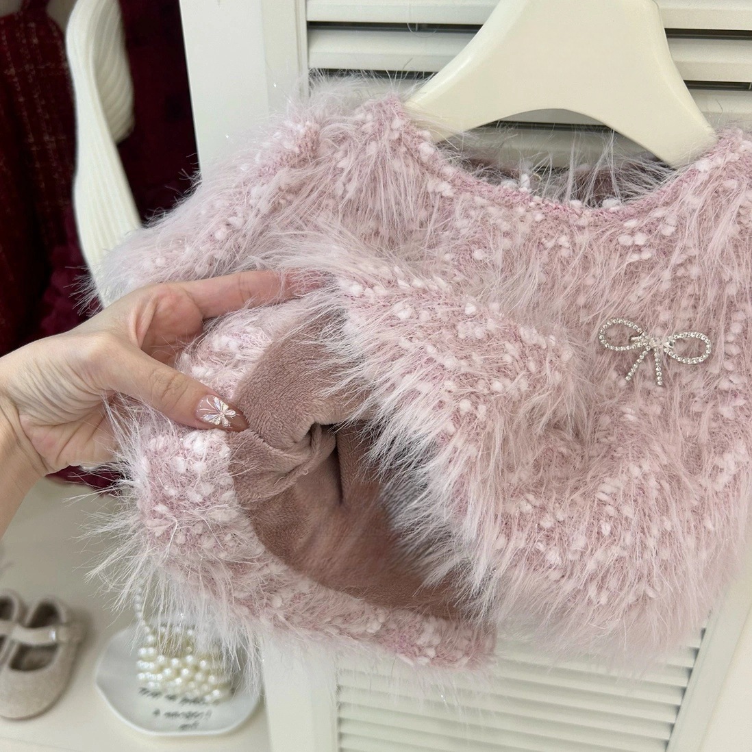 2025 새로운 아동복 소녀 겨울 새해 옷 핑크 작은 향기로운 두꺼운 유행 모피 새해 옷 정장스토어 가기
