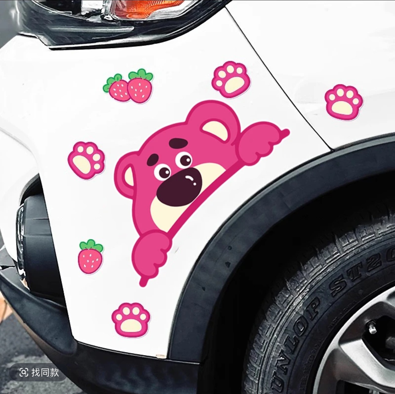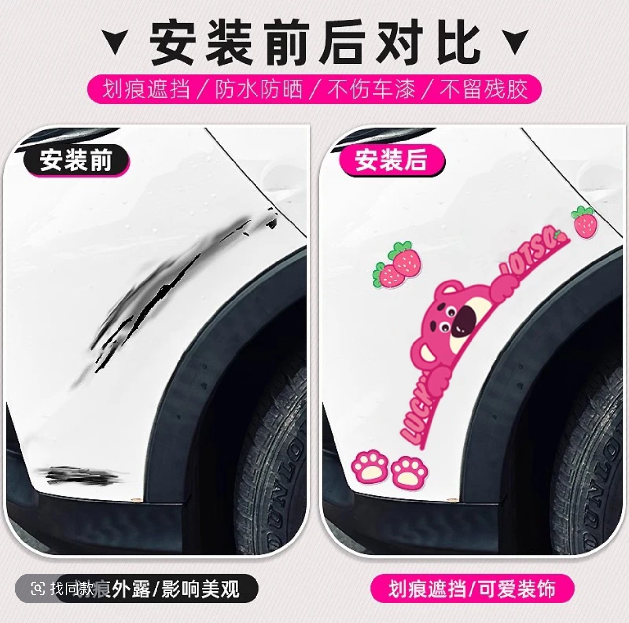 자동차 범퍼 스크래치 커버 스티커 바디 스크래치 커버 스티커 자동차 헤드 휠 눈썹 창조적 인 딸기 곰 스티커스토어 가기