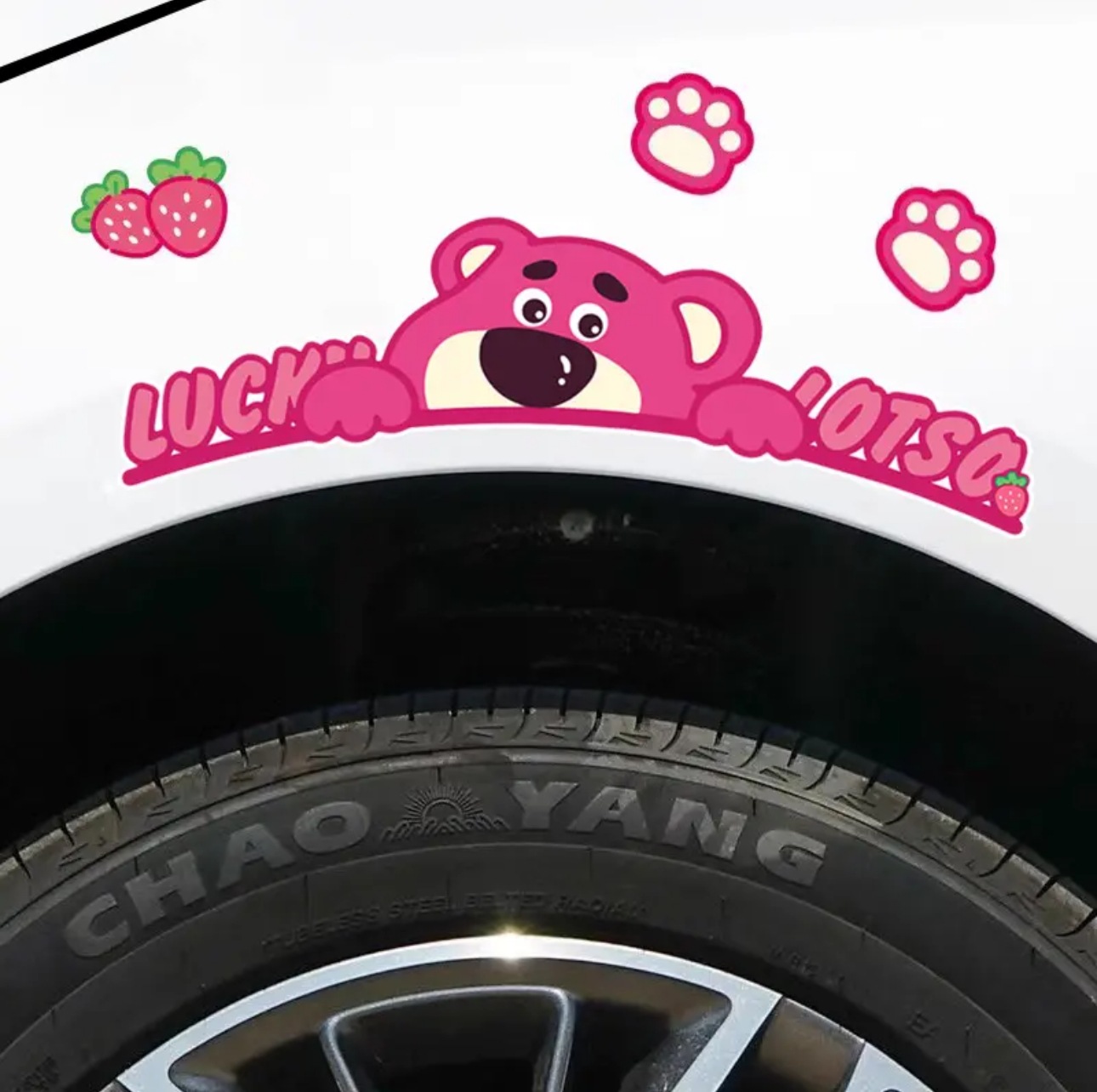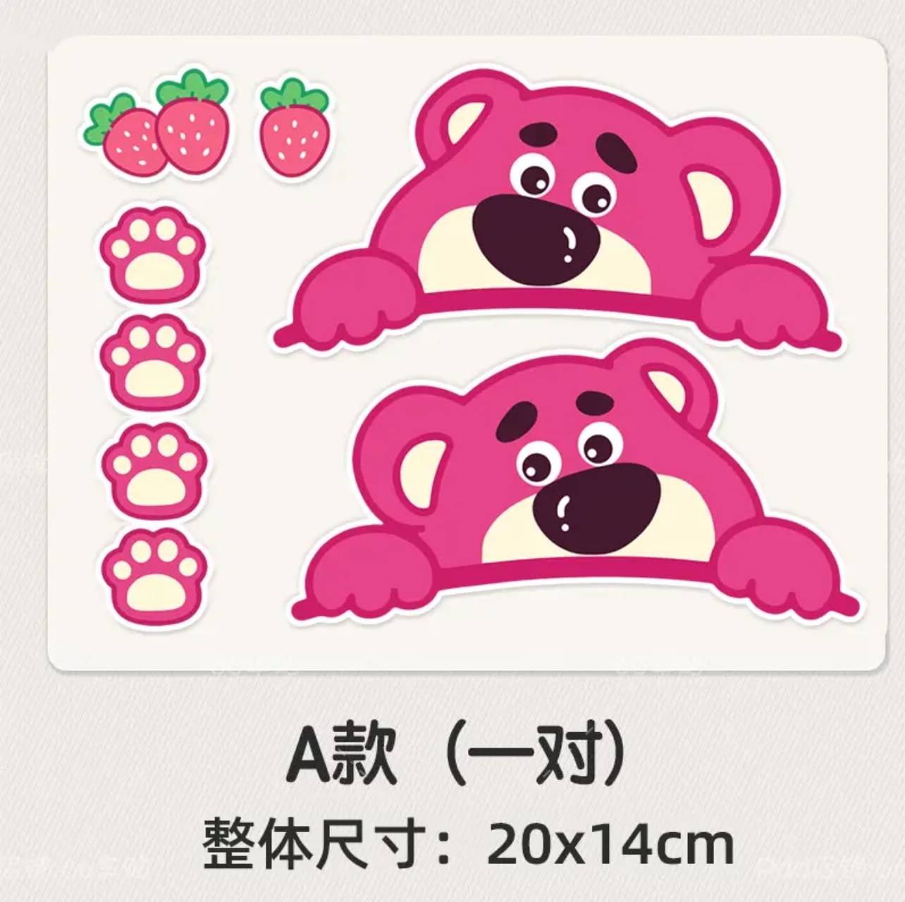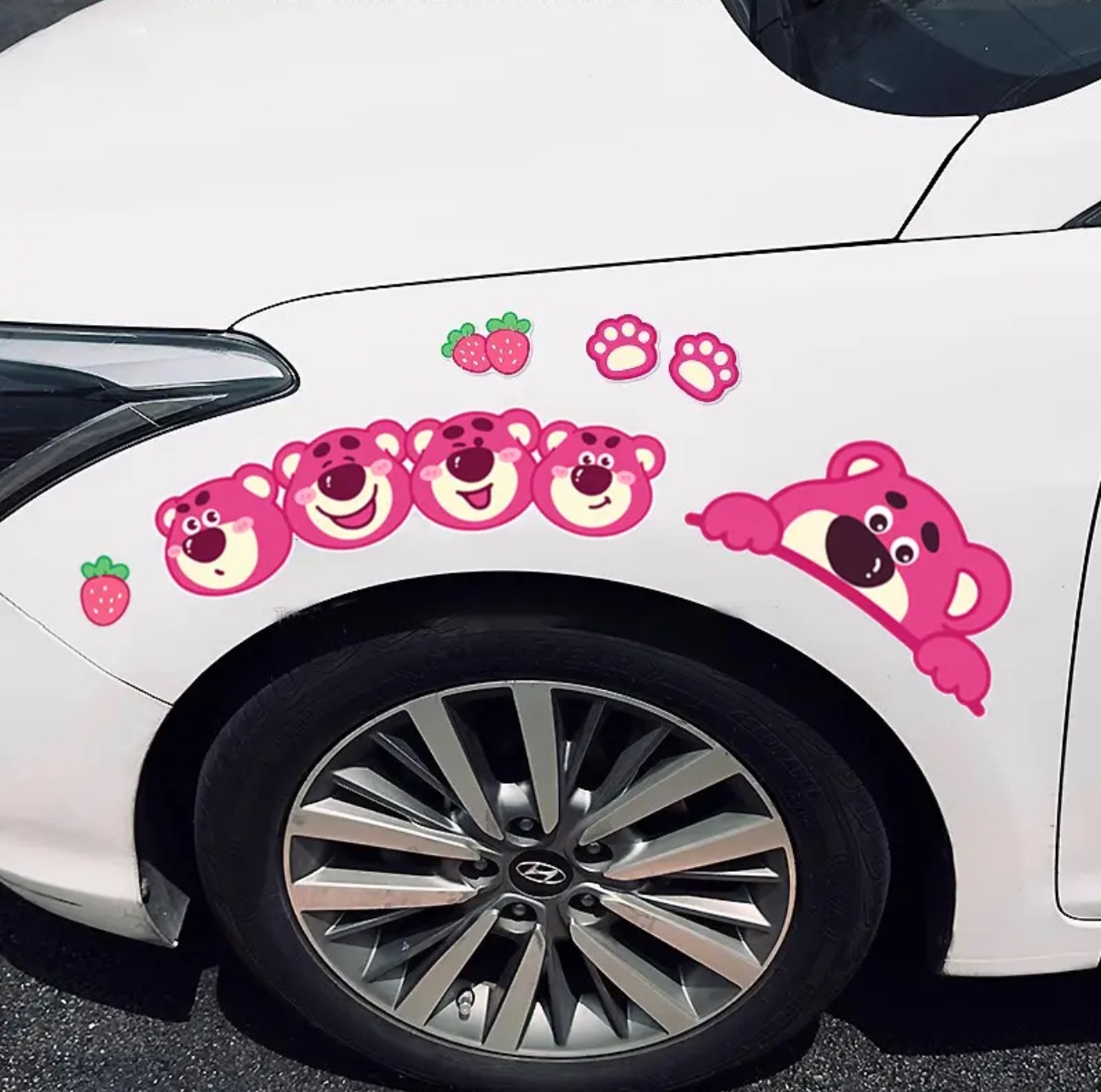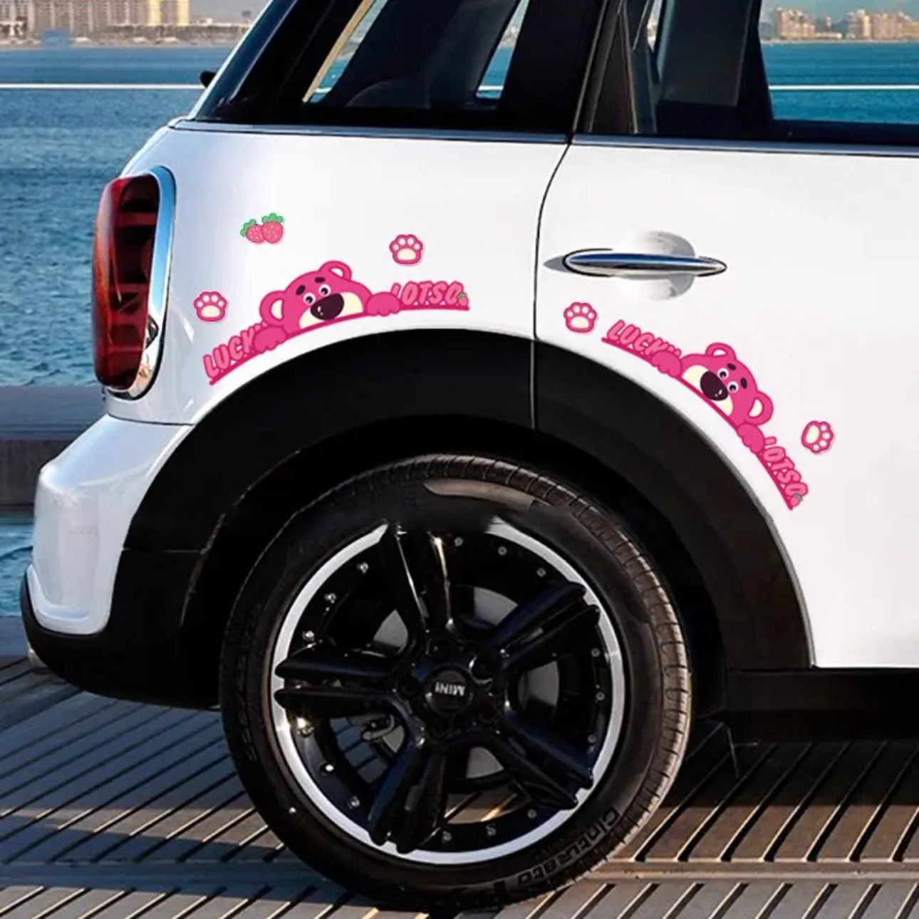 자동차 범퍼 스크래치 커버 스티커 바디 스크래치 커버 스티커 자동차 헤드 휠 눈썹 창조적 인 딸기 곰 스티커