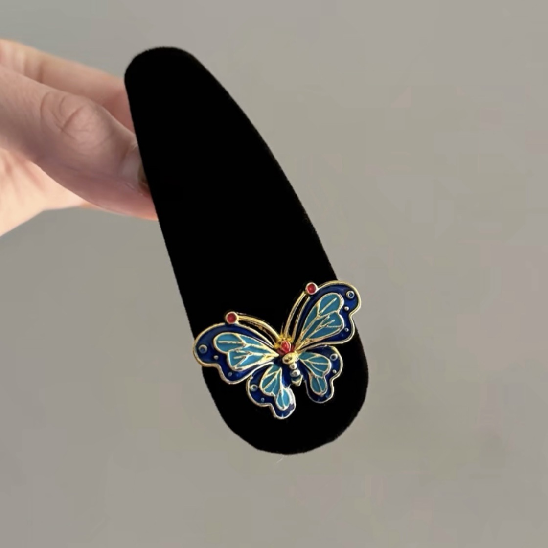 새로운 중국식 레트로 벨벳 나비 BB 클립 고급 기질 뱅 사이드 클립 깨진 헤어핀 헤드웨어 여성용 Guofeng 헤어핀스토어 가기