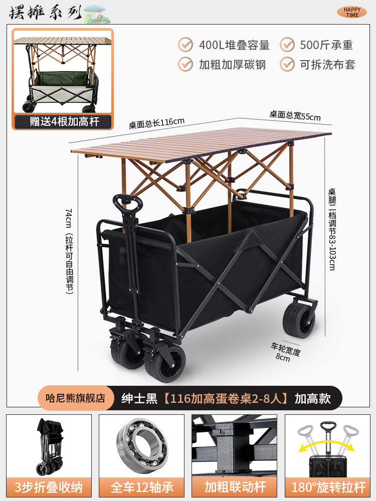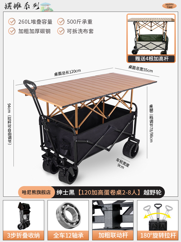 특별한 접이식 마구간 트롤리 마구간 테이블 소시지 모바일 야외 캠프 쇼핑 캠핑 피크닉 자동차 휴대용스토어 가기