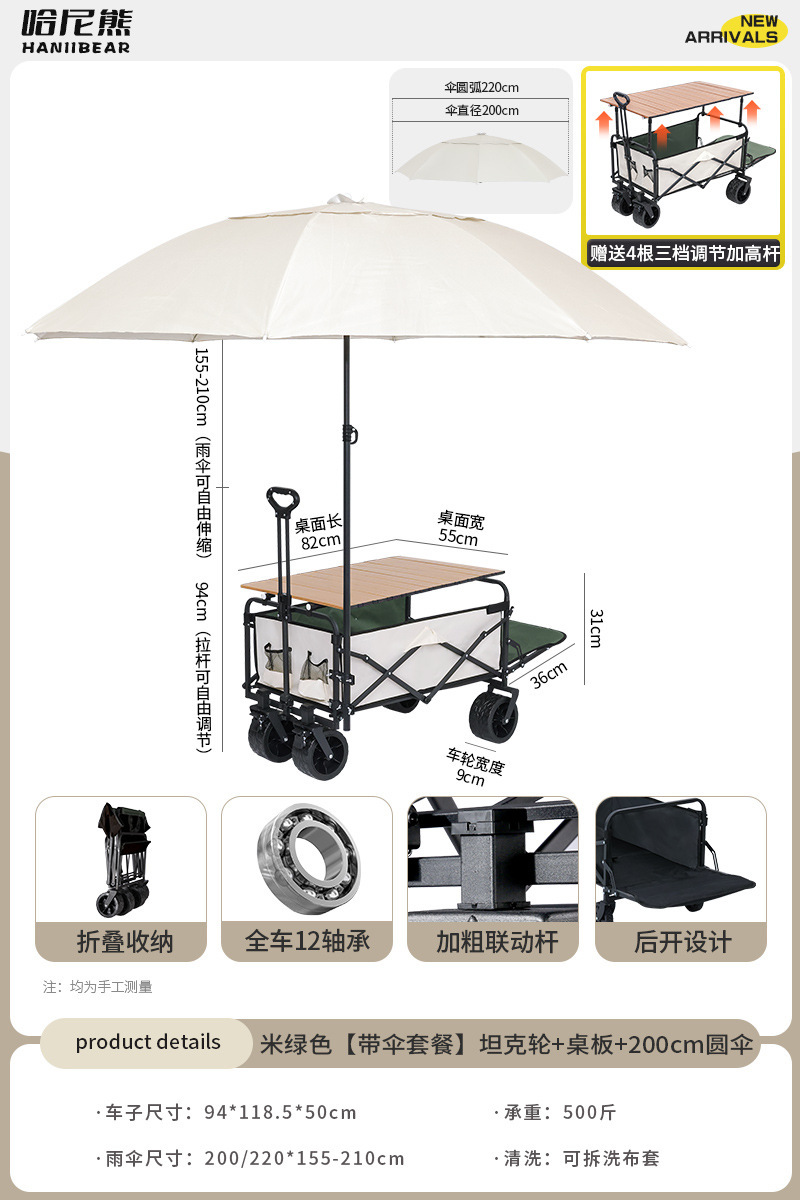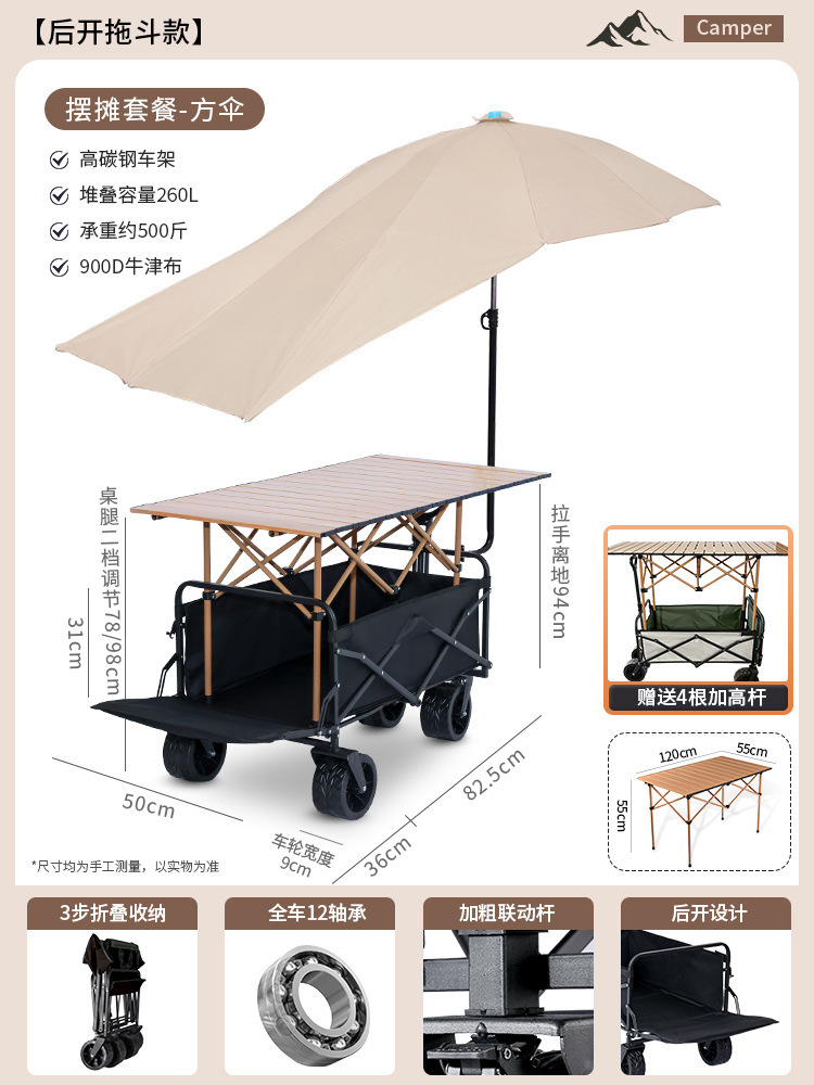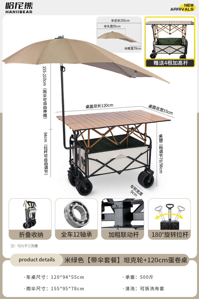 • 나는 노점을 세우는 것을 좋아합니다 * 120 테이블 높이 액세서리 * 드래그 버킷이 있는 초대형 항공기 바퀴 [베이지색] + 우산