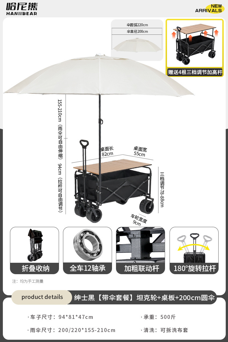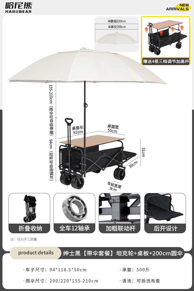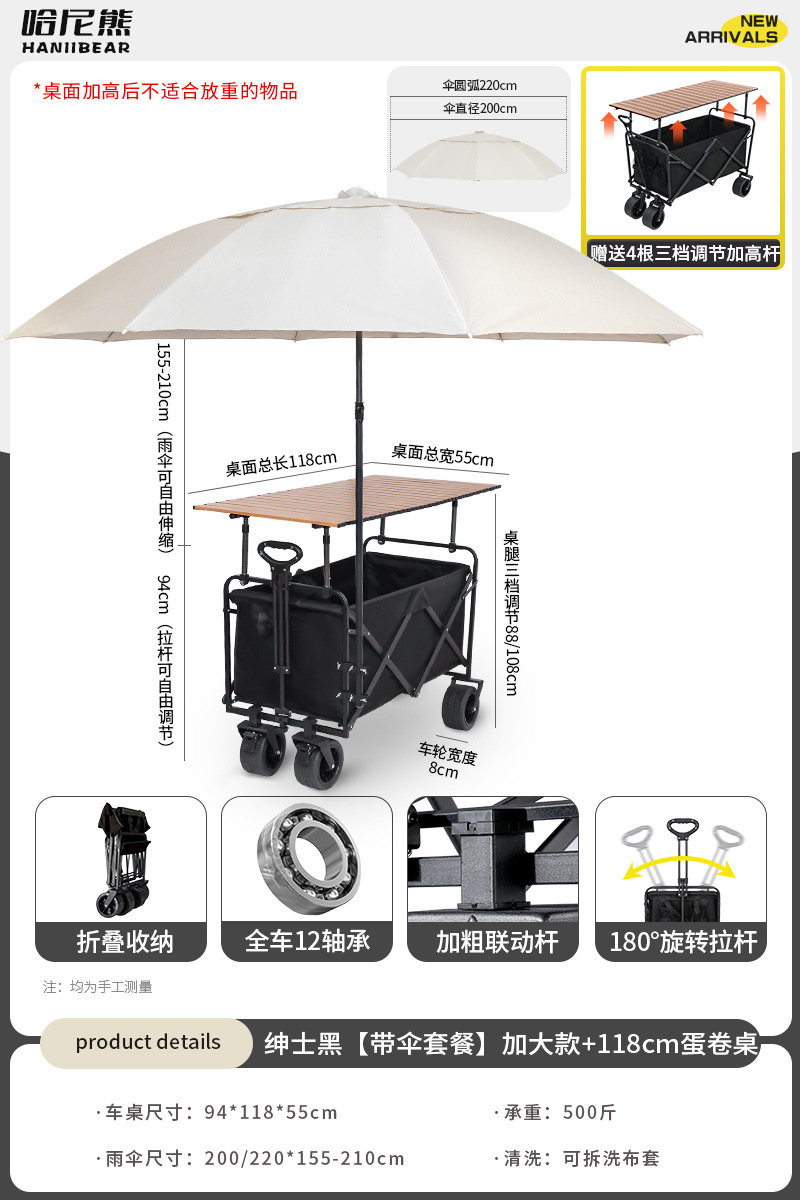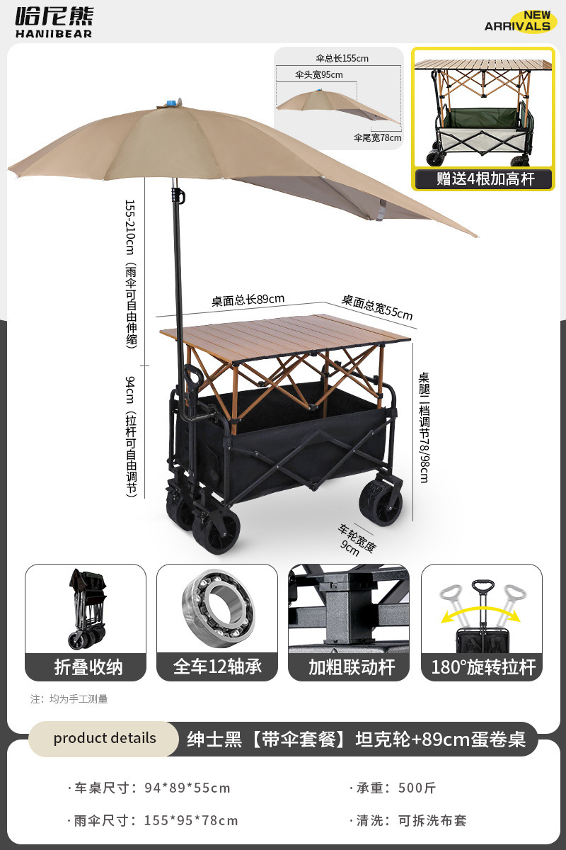 • 나는 노점을 세우는 것을 좋아합니다 * 120 테이블 높이 액세서리 * 드래그 버킷이 있는 초대형 항공기 바퀴 [젠틀맨 블랙] + 우산