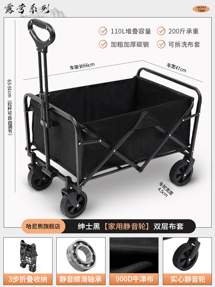 • 젠틀맨 블랙 스몰 모델 [가정용 5인치 유니버설 휠] 더블 레이어 두꺼운 옥스포드 천