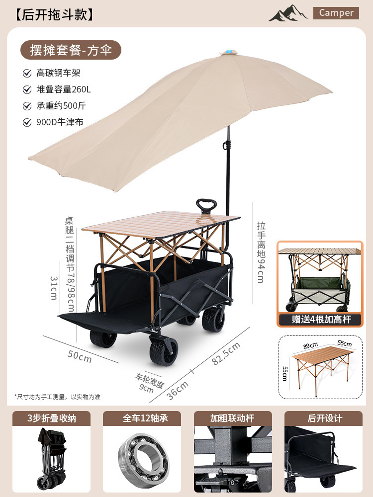 • 나는 노점을 세우는 것을 좋아합니다 * 테이블 높이 액세서리 90개 * 후면 개방형 초대형 항공기 바퀴 [베이지색] + 우산
