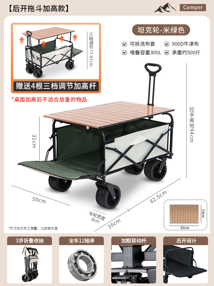 • 이중 목적 차량 및 테이블에는 데스크탑 높이 조절 액세서리가 함께 제공됩니다. * 드래그 버킷이 있는 초대형 항공기 바퀴 [베이지 그린] + 우산