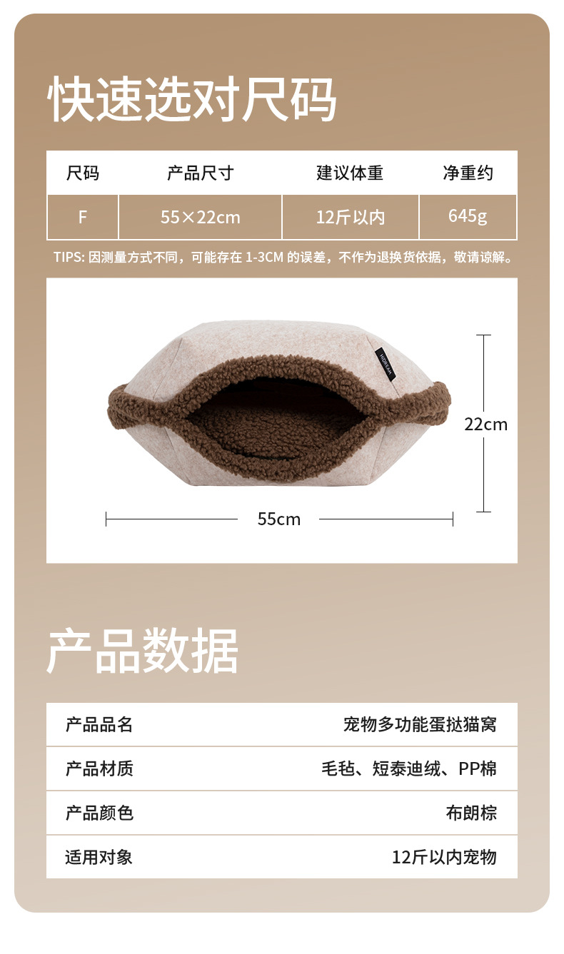 • 다기능 에그타르트 고양이 둥지; 브라운 브라운; F-직경 55cn