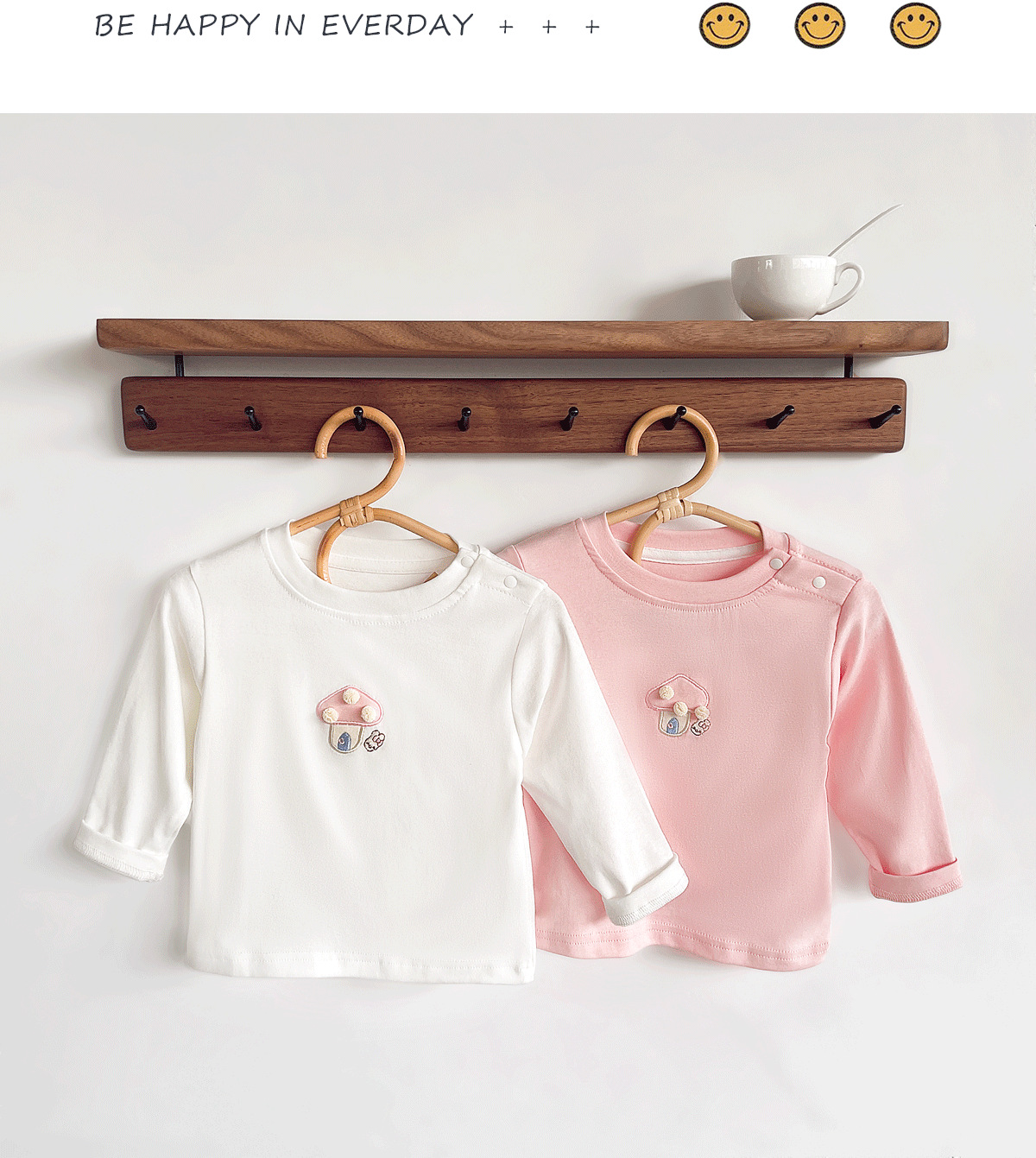 0-5 세 봄, 가을 새로운 한국 아동복 유아 단색 단순 티셔츠 편안하고 다재다능한 부드러운 바닥 셔츠스토어 가기