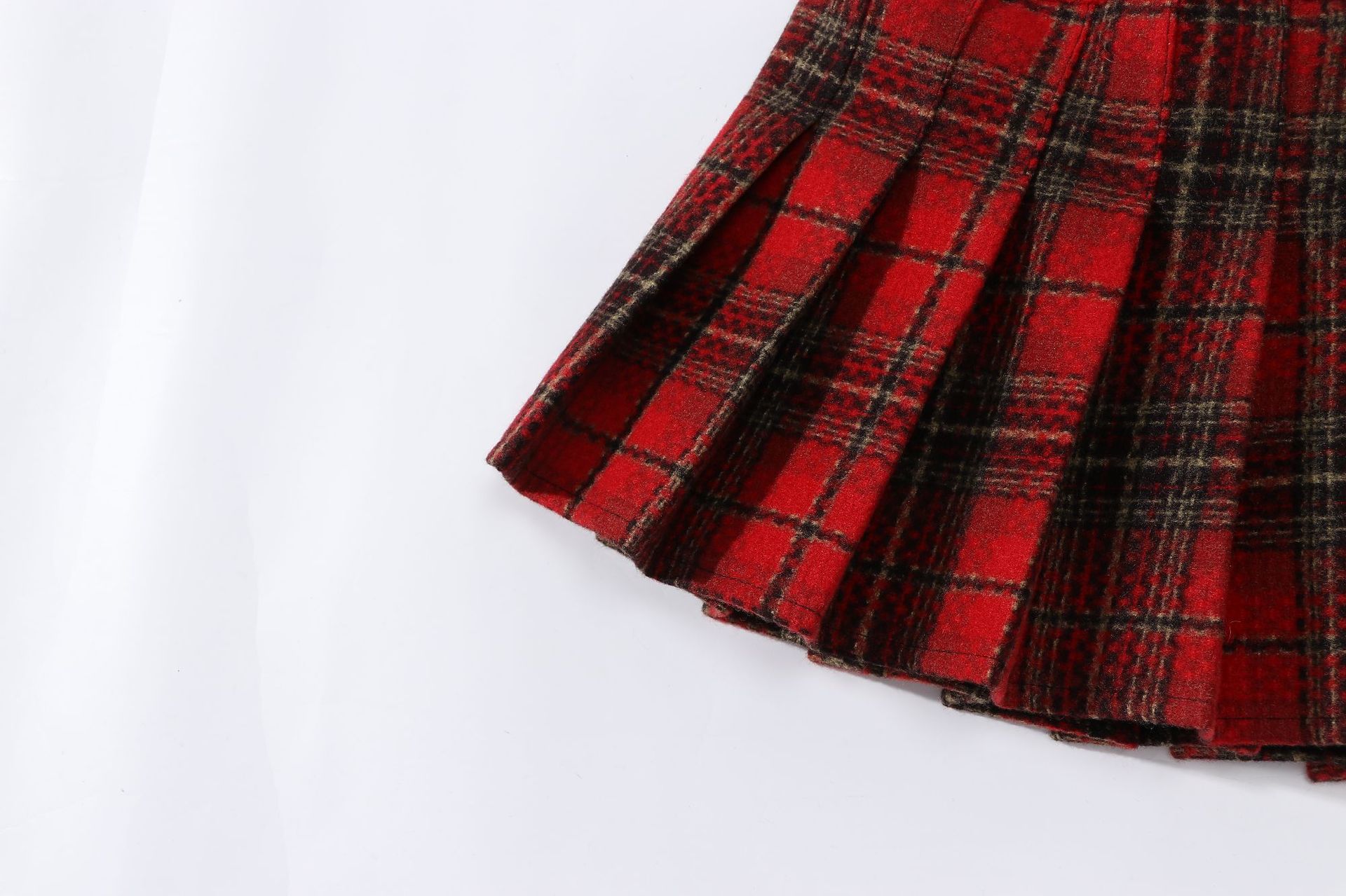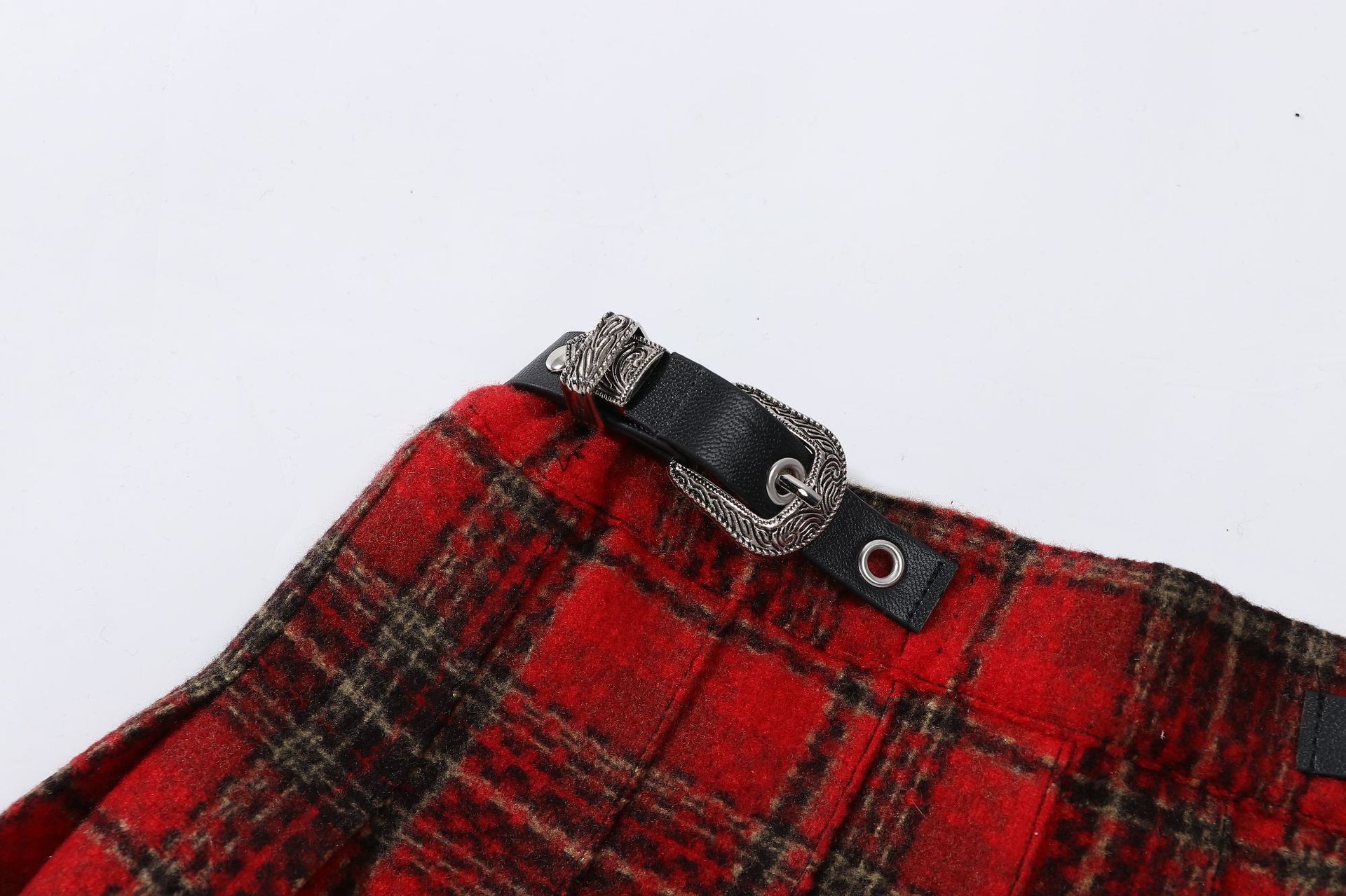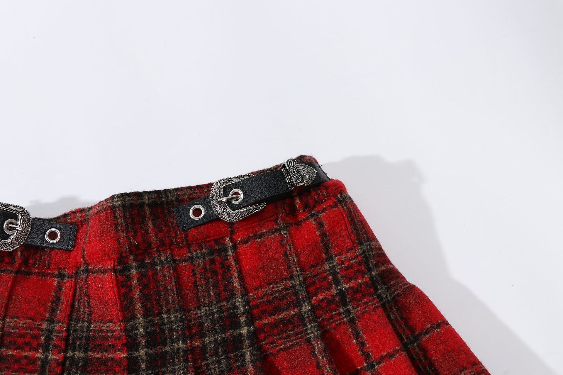 소녀의 봄과 가을 주름 치마 2024 크리스마스 격자 무늬 가죽 버클 A-라인 높은 허리 디자인 틈새스토어 가기