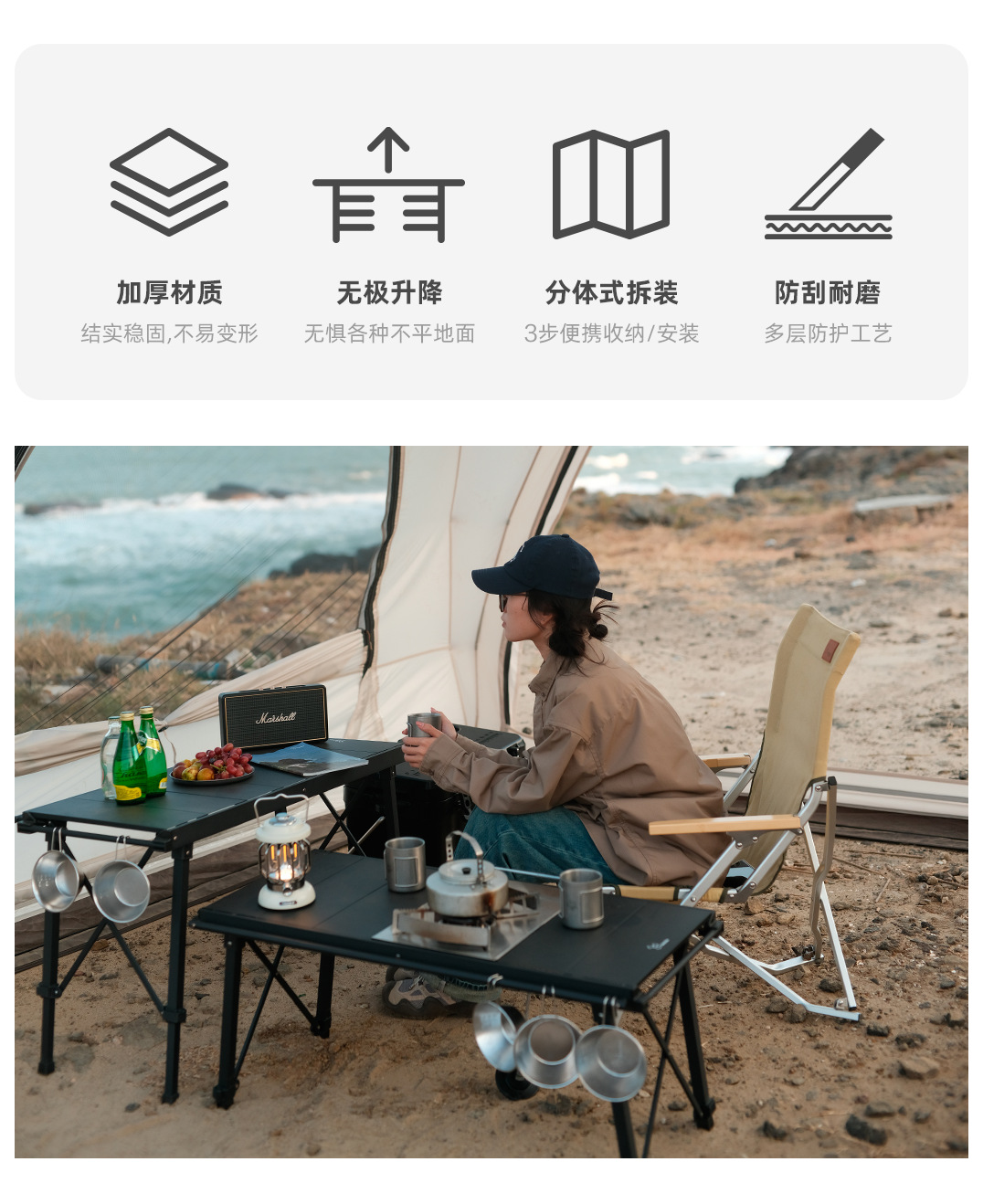 Vidalido 다기능 캠핑 IGT 전술 테이블 야외 휴대용 분할 접합 Liftable 접이식 테이블스토어 가기