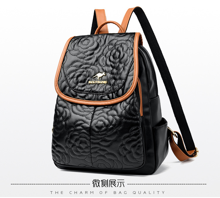 대외 무역 폭발 PU 소프트 가죽 배낭 여성의 새로운 한국식 올매치 대용량 배낭 소프트 숄더 자수 스쿨백