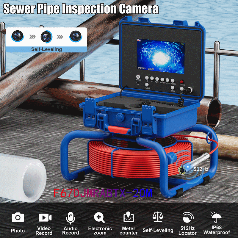 型号:F67DJMRABTX:7寸AHD录像屏,带计米器,直径23mm不锈钢探头,带自平衡512HZ发射, 蓝宝石镜片,高清1080P,镜头角度145度,20米-30米管道内窥镜,4500MA内置电池,带电量显示,12个白光灯,带摄像头保护套2种,送16G卡。5MM红色线缆。