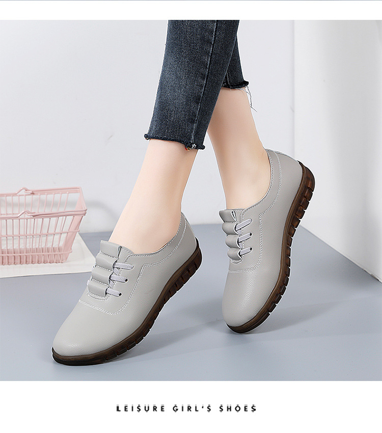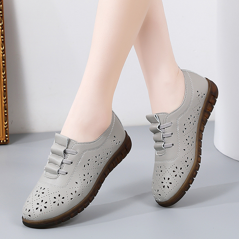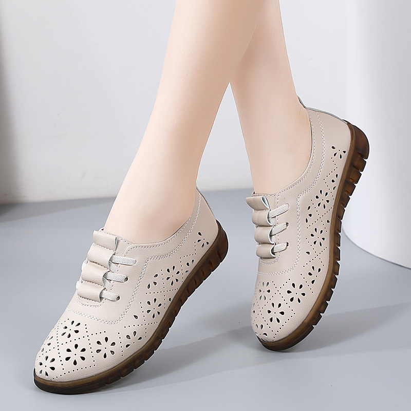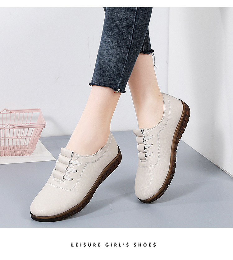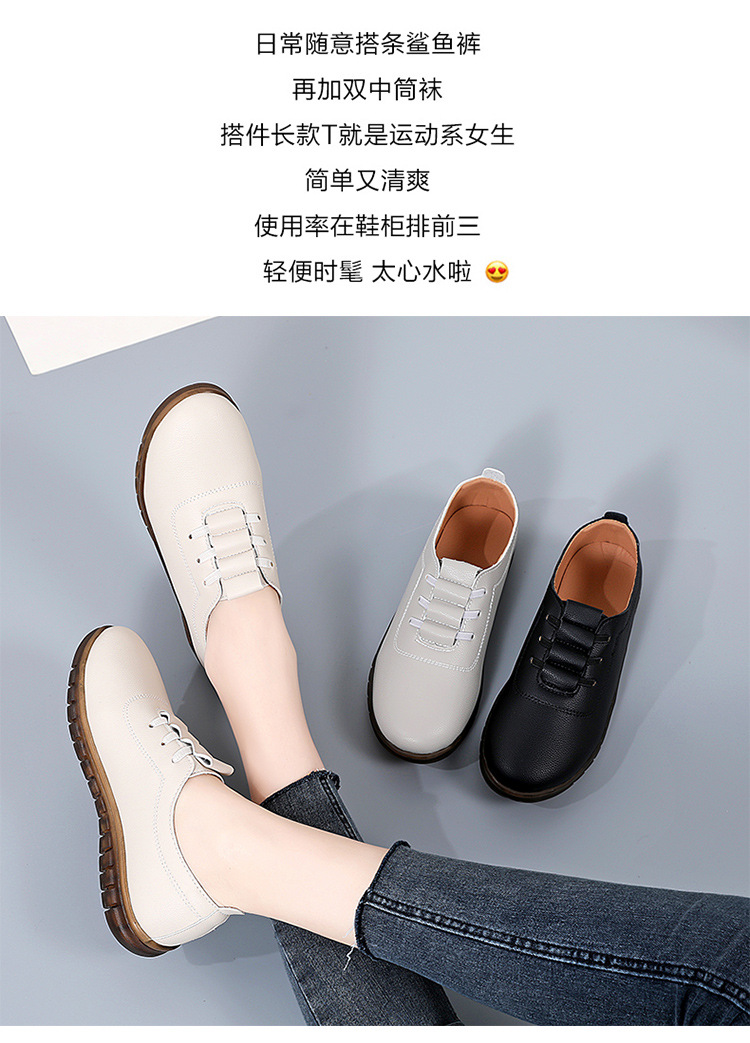 국경 간 새 콩 신발 여성의 부드러운 밑창 작은 흰색 신발 한 페달 속이 빈 플랫 밑창 어머니 신발 비 슬립 캐주얼 가죽 신발 여성용스토어 가기