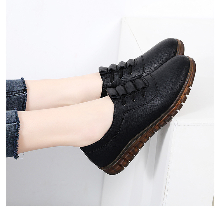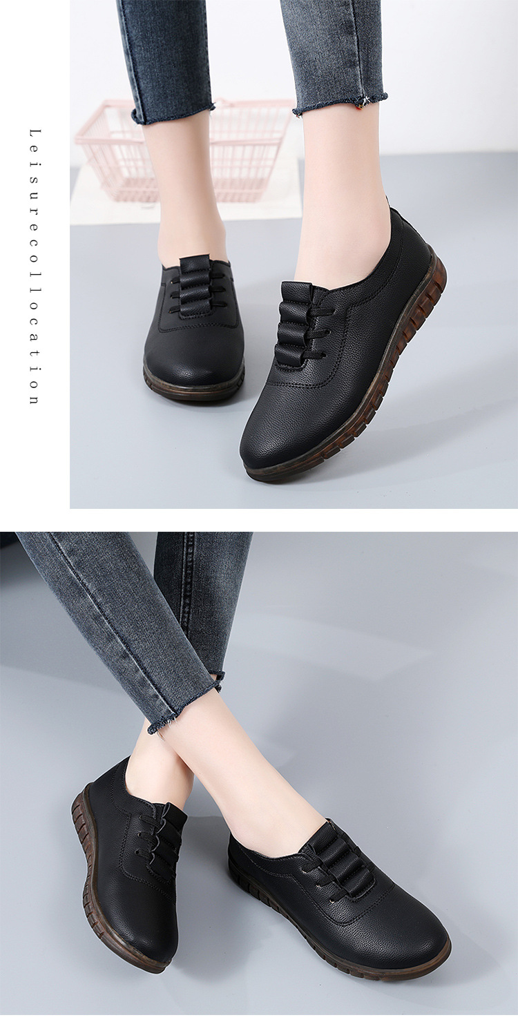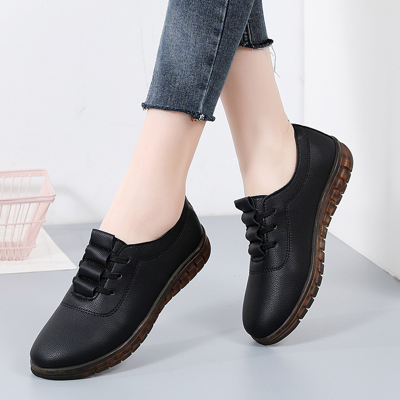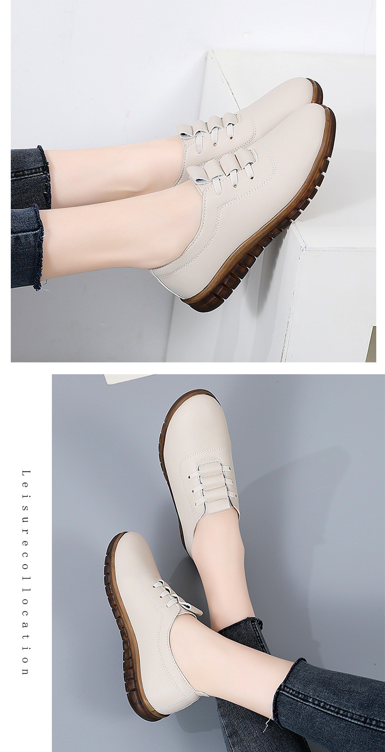 국경 간 새 콩 신발 여성의 부드러운 밑창 작은 흰색 신발 한 페달 속이 빈 플랫 밑창 어머니 신발 비 슬립 캐주얼 가죽 신발 여성용스토어 가기