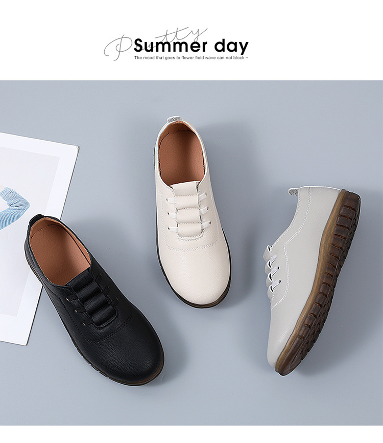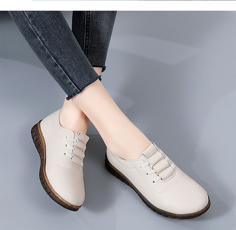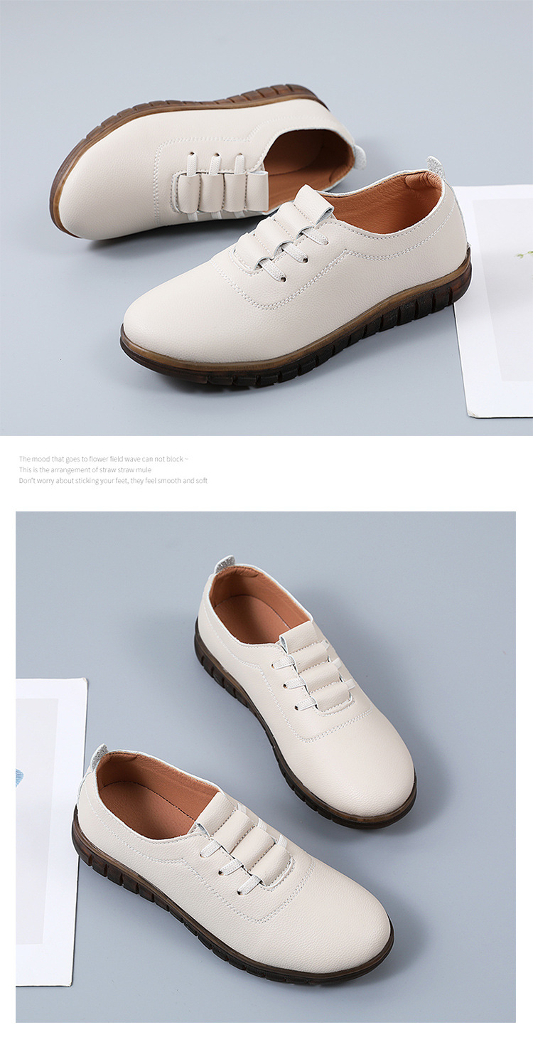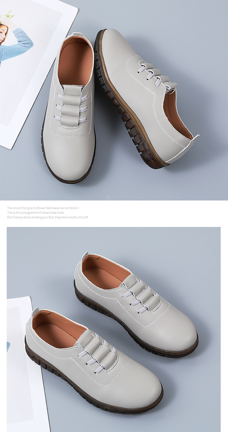 국경 간 새 콩 신발 여성의 부드러운 밑창 작은 흰색 신발 한 페달 속이 빈 플랫 밑창 어머니 신발 비 슬립 캐주얼 가죽 신발 여성용
