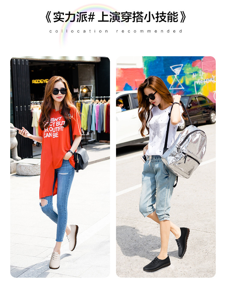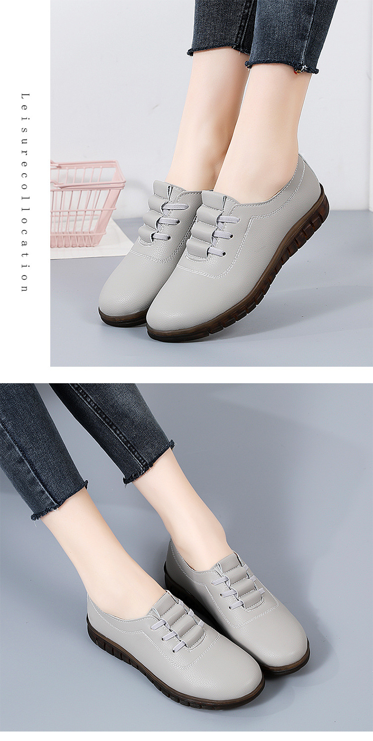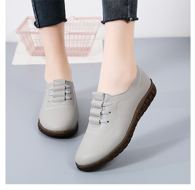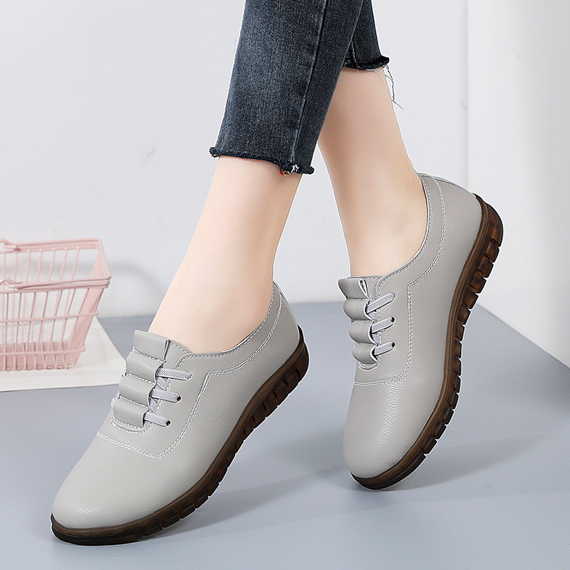 국경 간 새 콩 신발 여성의 부드러운 밑창 작은 흰색 신발 한 페달 속이 빈 플랫 밑창 어머니 신발 비 슬립 캐주얼 가죽 신발 여성용