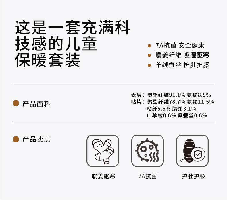 어린이 항균 따뜻한 세트 따뜻한 생강 속옷 잠옷 세트 수분 흡수 및 땀을 흘리는 아기 가을 옷 소년 소녀 카테고리 A