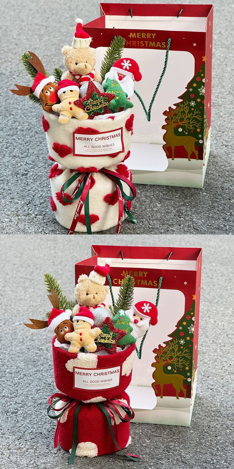 • 크리스마스 레드* 곰 꽃다발 + 선물 가방