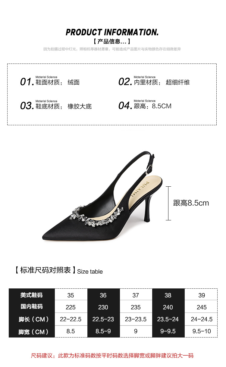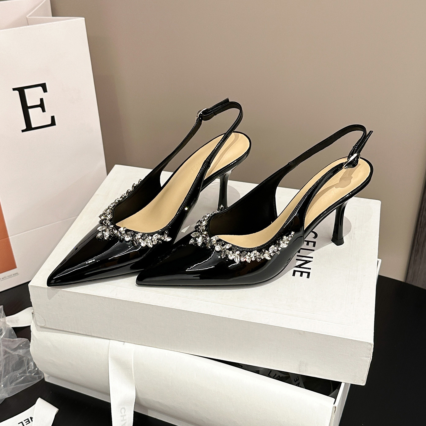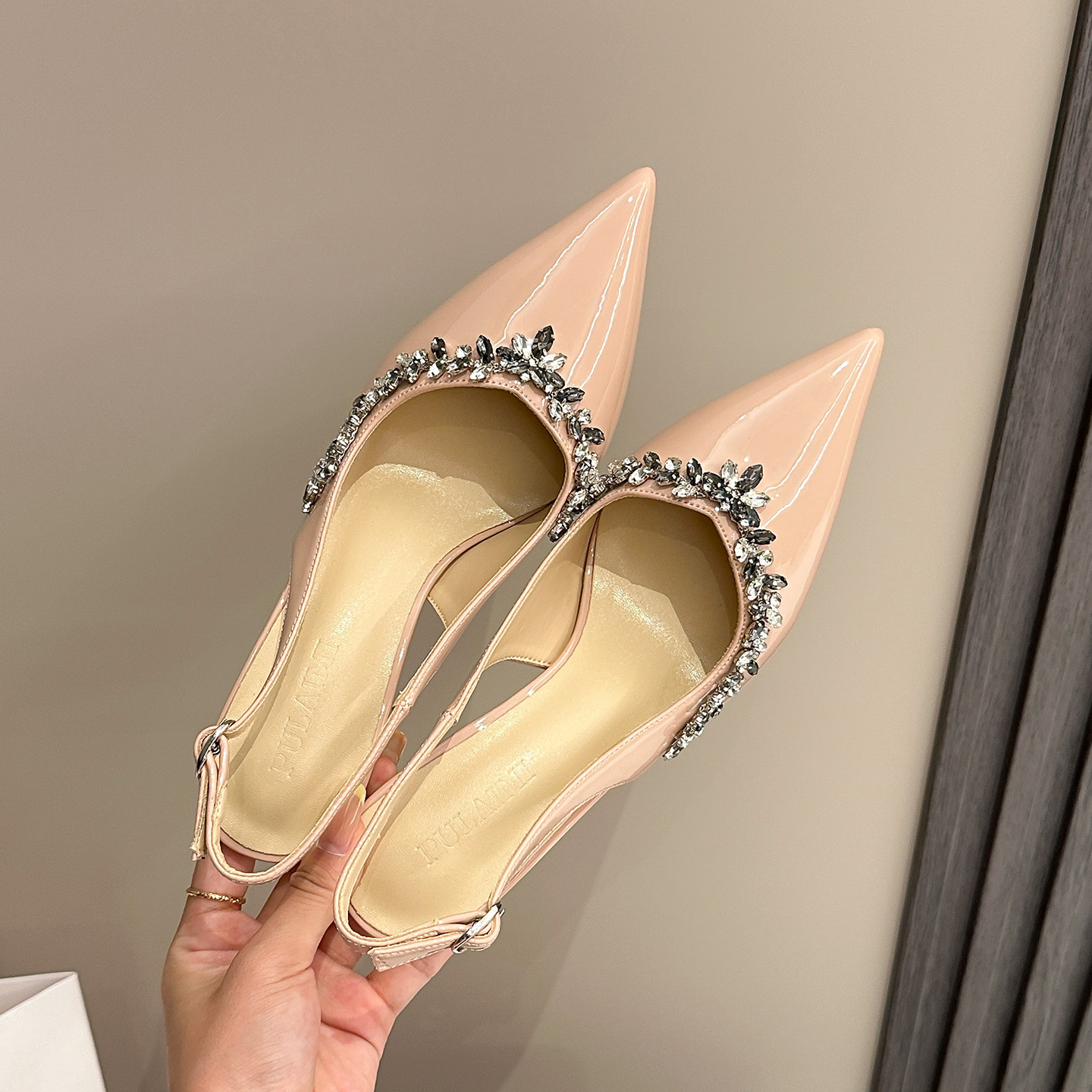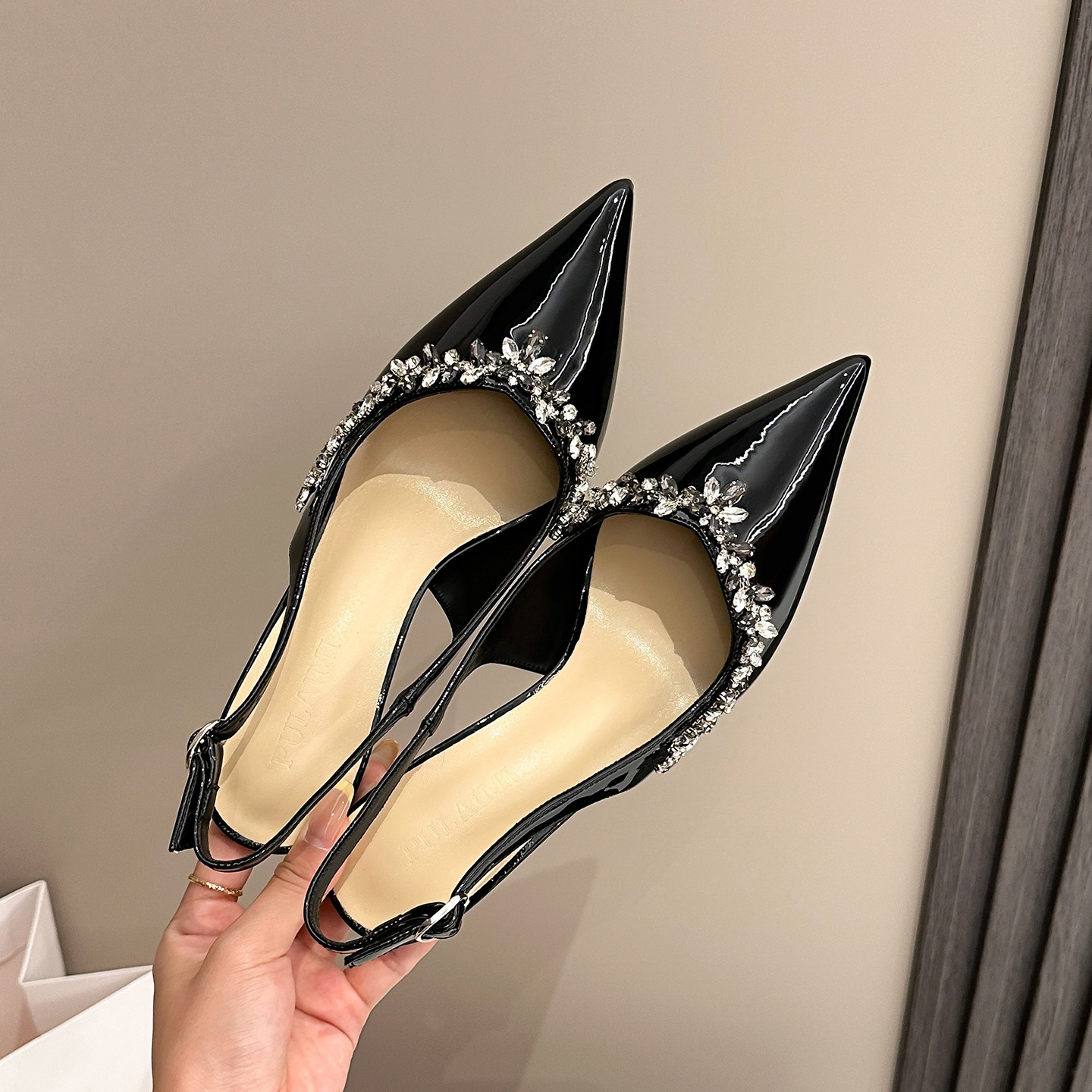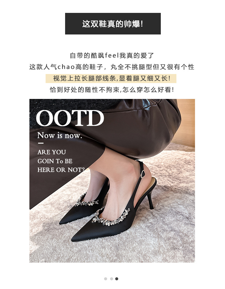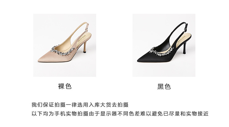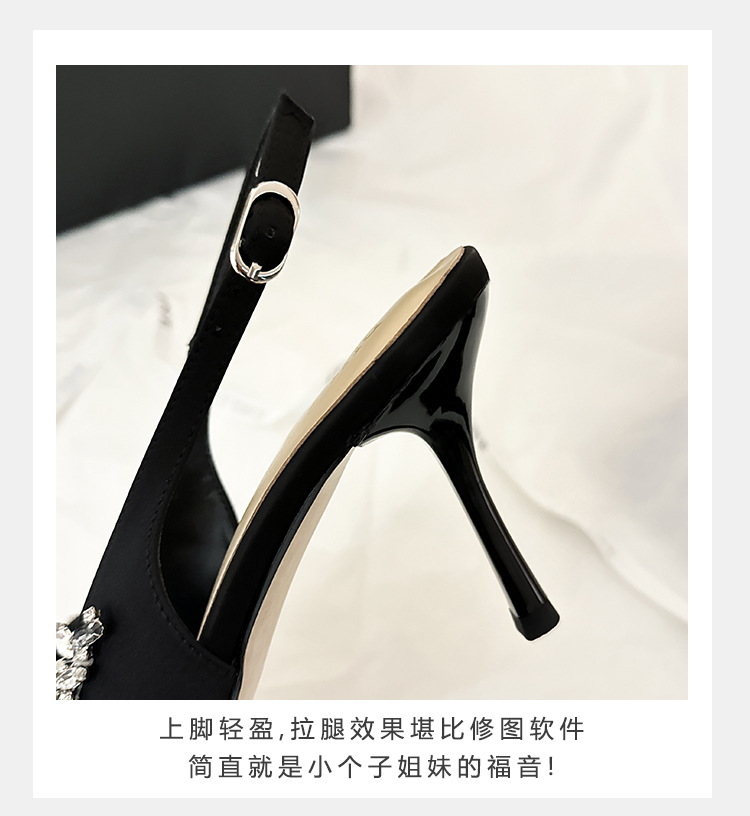 2025 라인스톤 하이힐 슈즈 새틴 스틸레토 힐 포인티드 발가락 프렌치 싱글 레이어 슈즈 여성용 반썰매 샌들스토어 가기