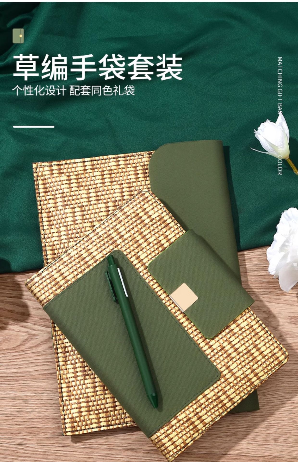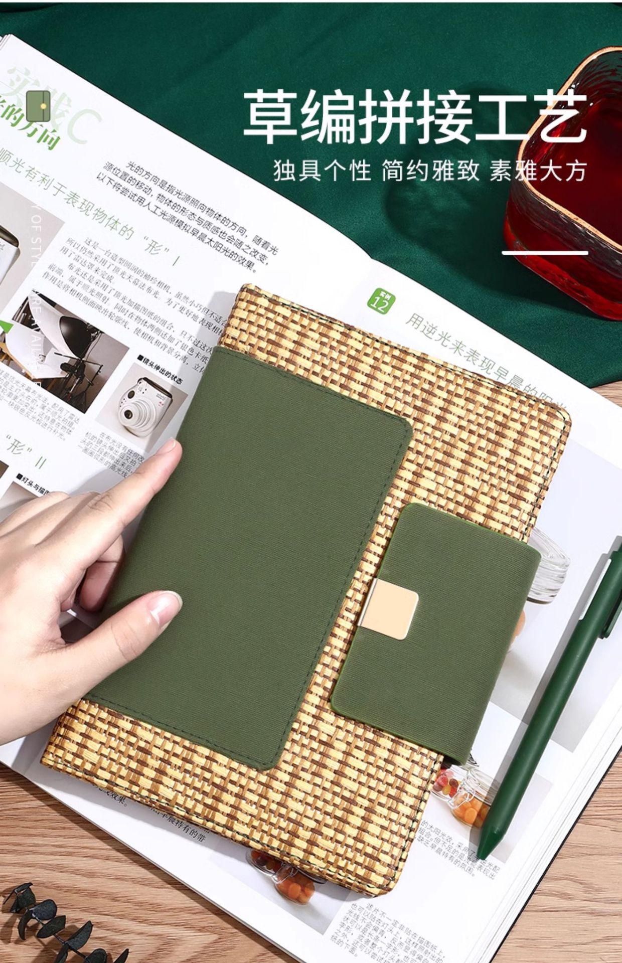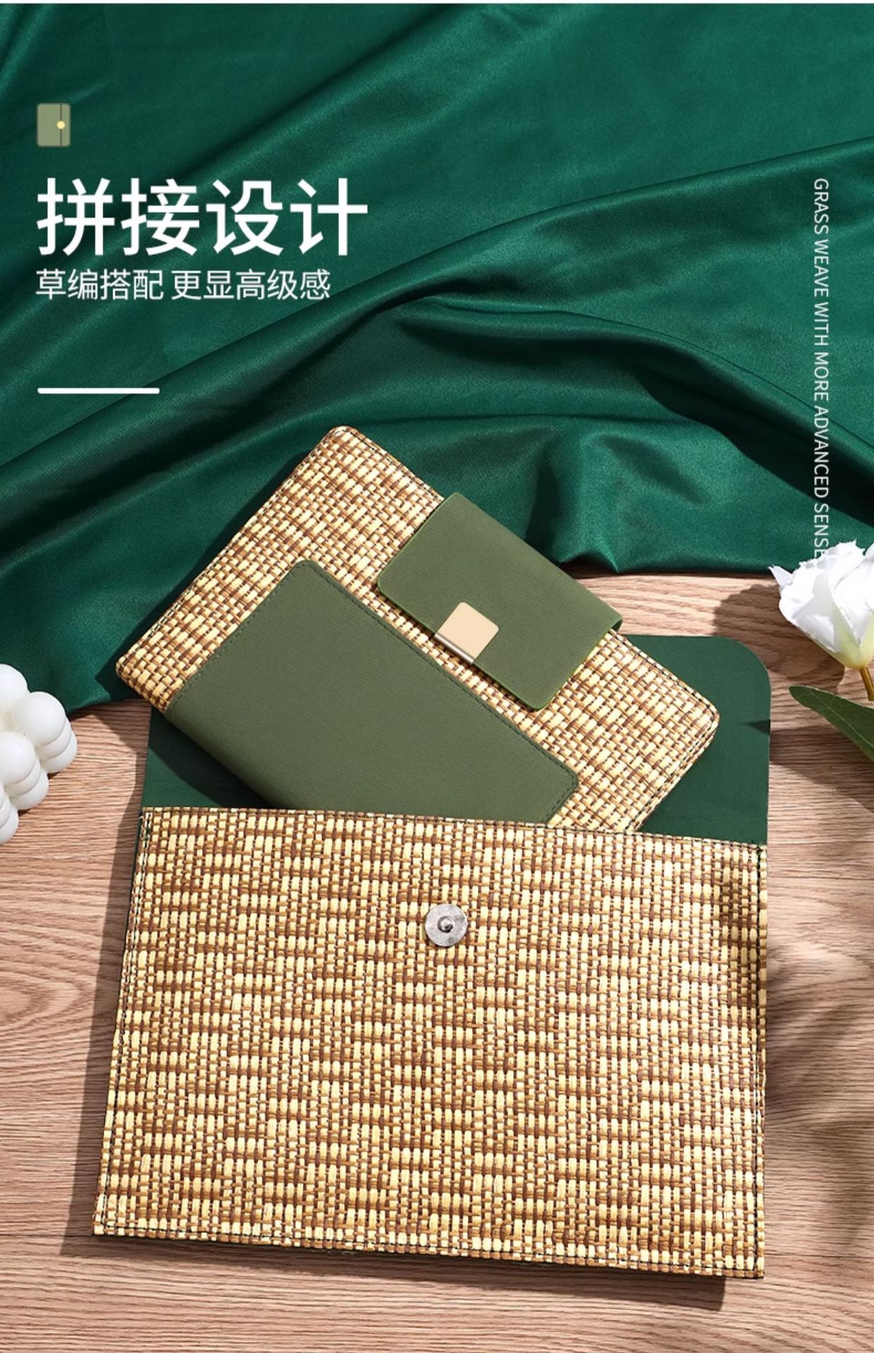 • 프레쉬 그린 노트 + 밀짚 핸드백