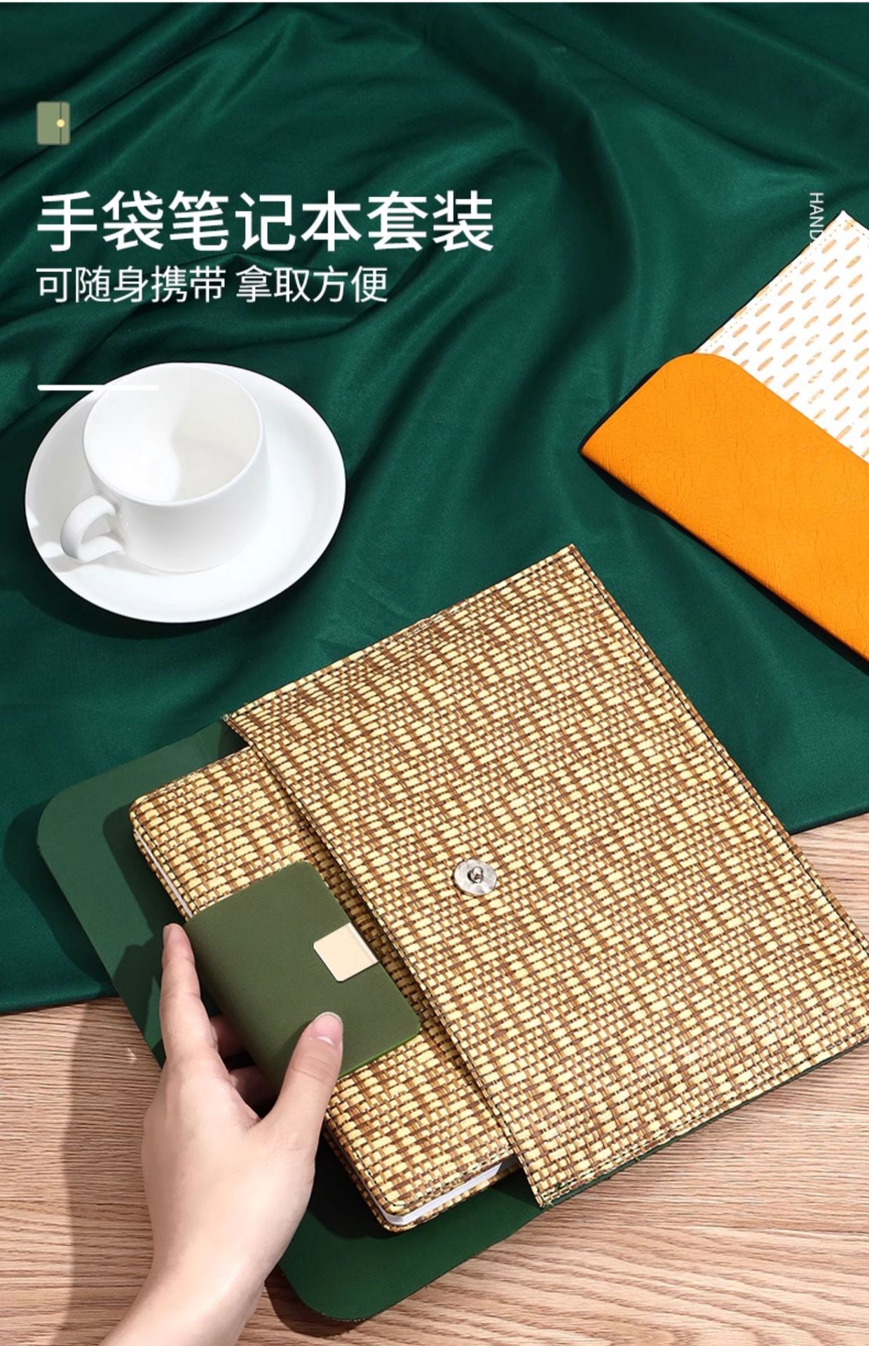 • 차 오렌지 라임 노트 + 밀짚 핸드백