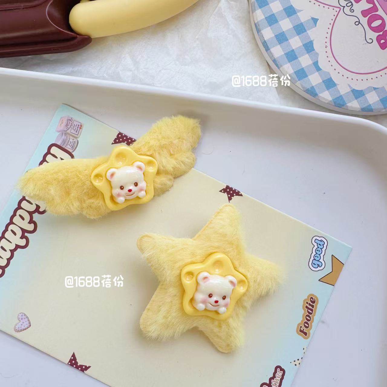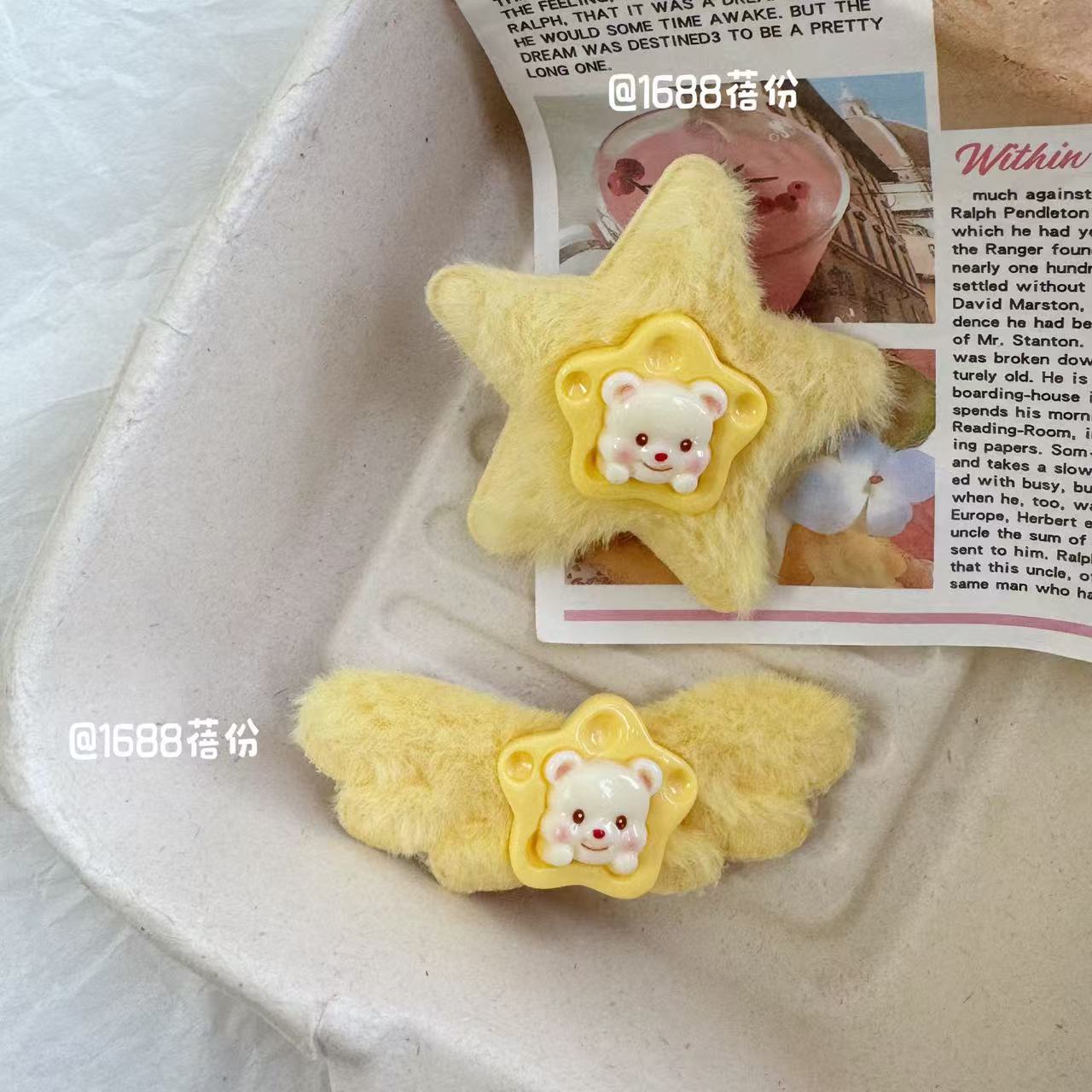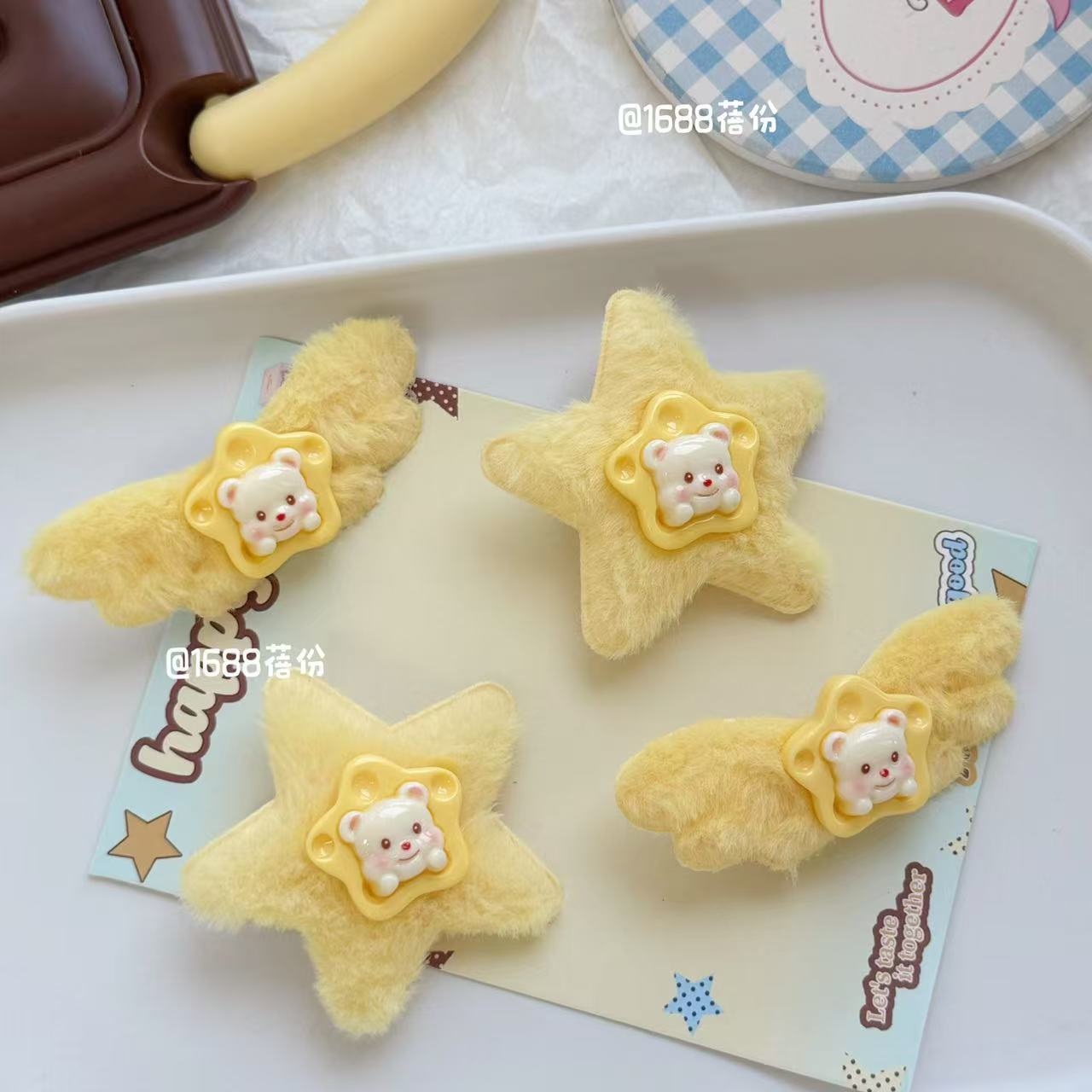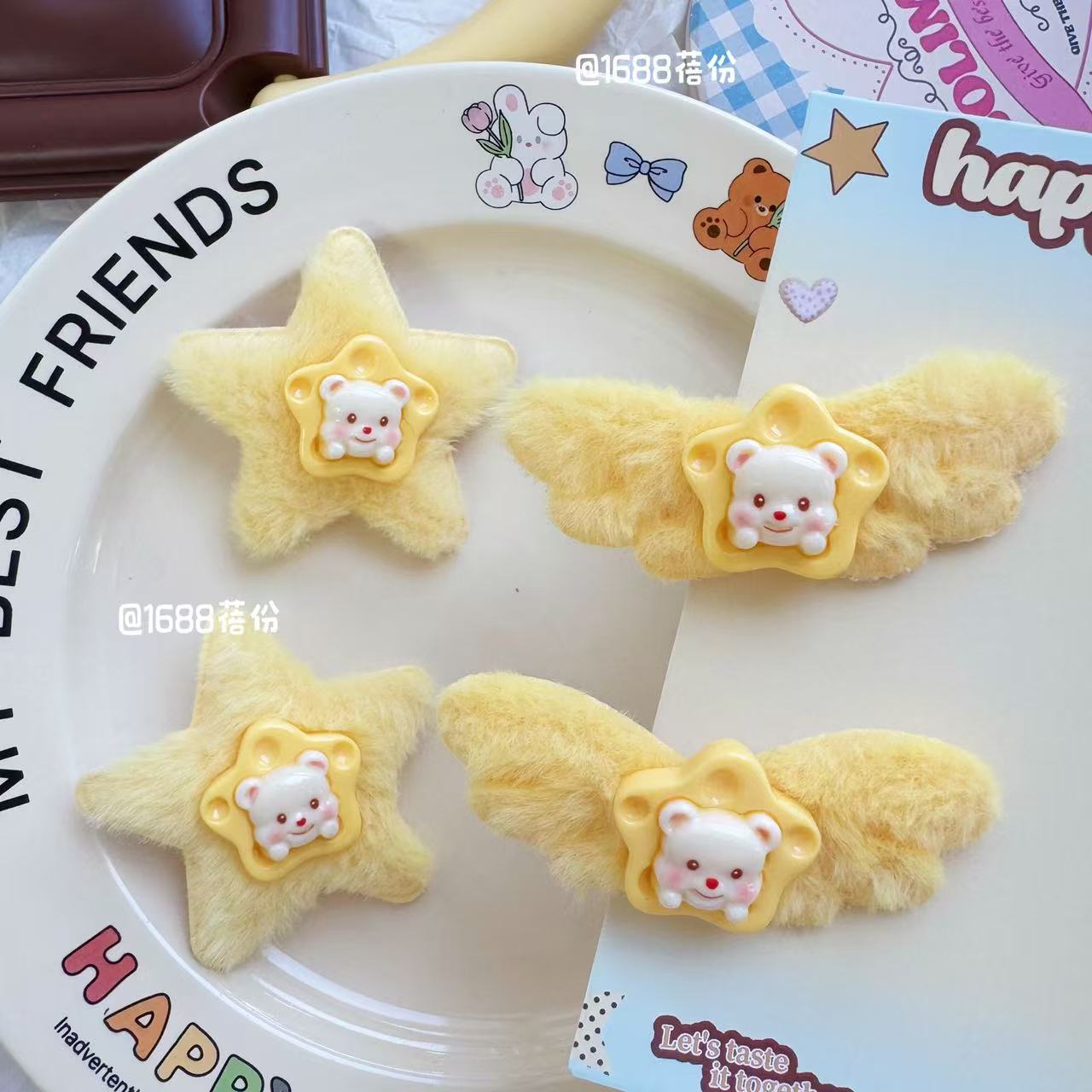 귀여운 버터 곰 봉제 스타 머리핀 Ins 달콤한 가리 하트 슈퍼 요정 천사 날개 덕빌 클립 헤어 액세서리