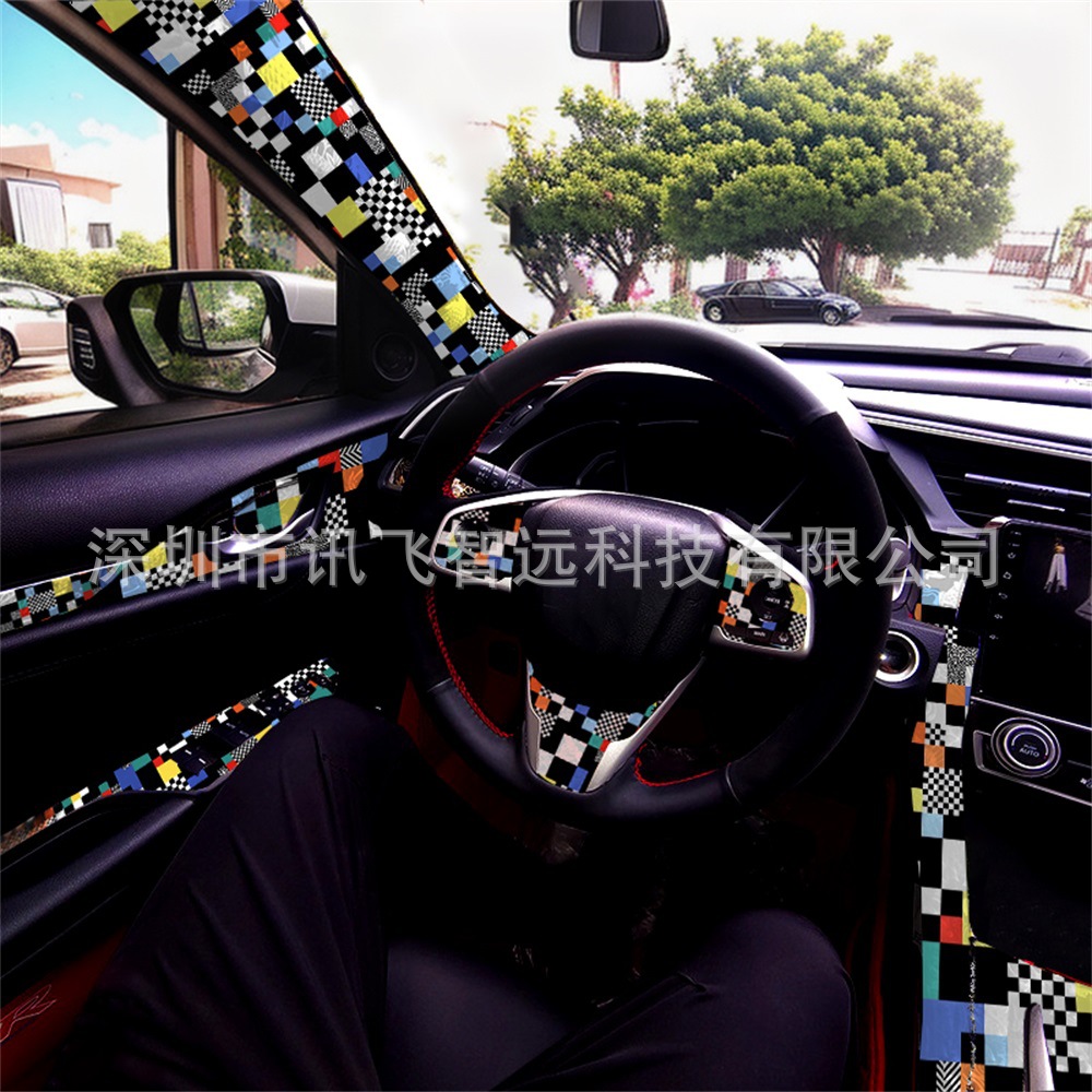자동차 AB 칼럼 아플리케 국립 타이드 브로케이드 자수 자체 접착 천 유니버설 AB 칼럼 천장 개조 자동차 인테리어 쥬얼리