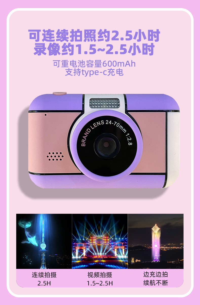 국경 간 어린이 카메라 2.4 인치 HD 화면 듀얼 카메라 미니 모자이크 컬러 카메라 기계 스크류 플래시