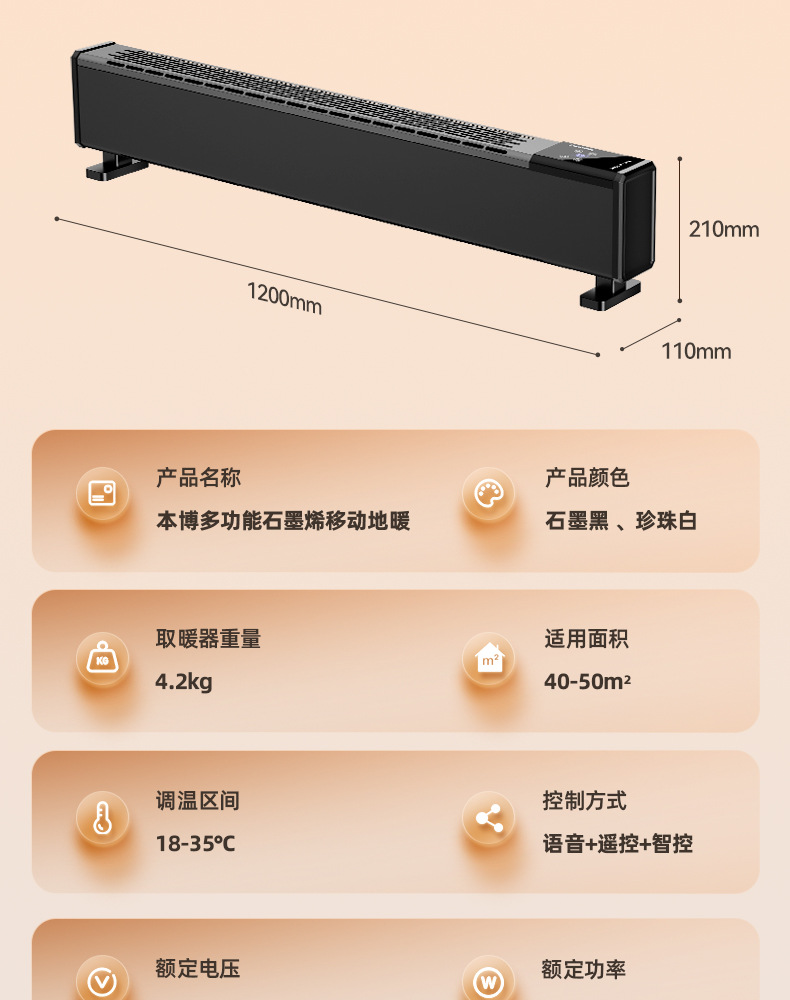 • 【음성 제어 모델 - 25-40평 적합】1140MM 그래핀 + 3C 인증 + 2200W 고출력 강화 + 안전 잠금 장치/회색 모델