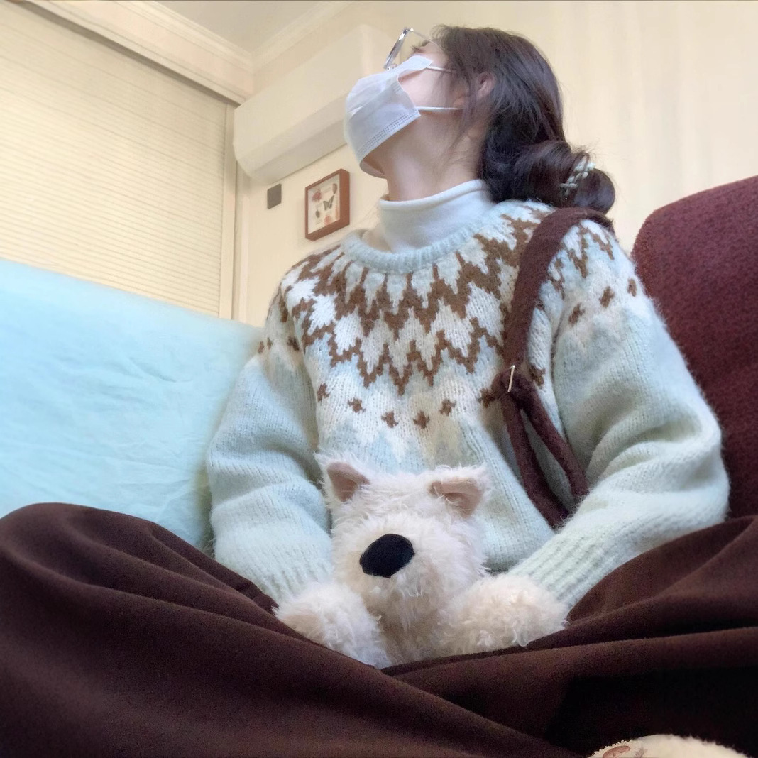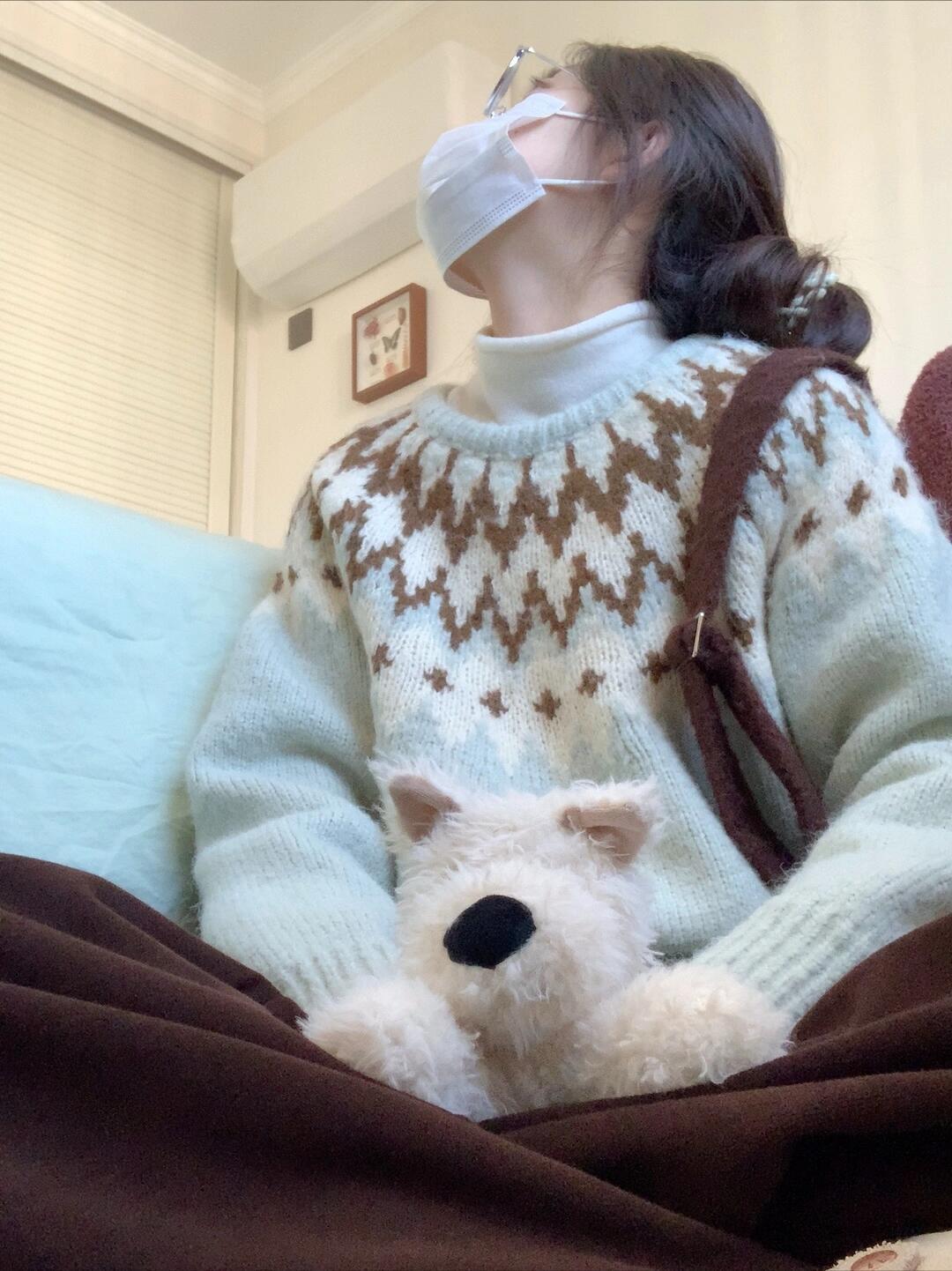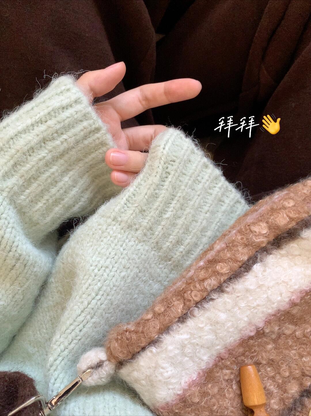 밀크 푸푸 게으른 스웨터 여자 2024 새로운 소프트 왁스 펠섬 니트 스웨터 한국식 하이 엔드 세트스토어 가기